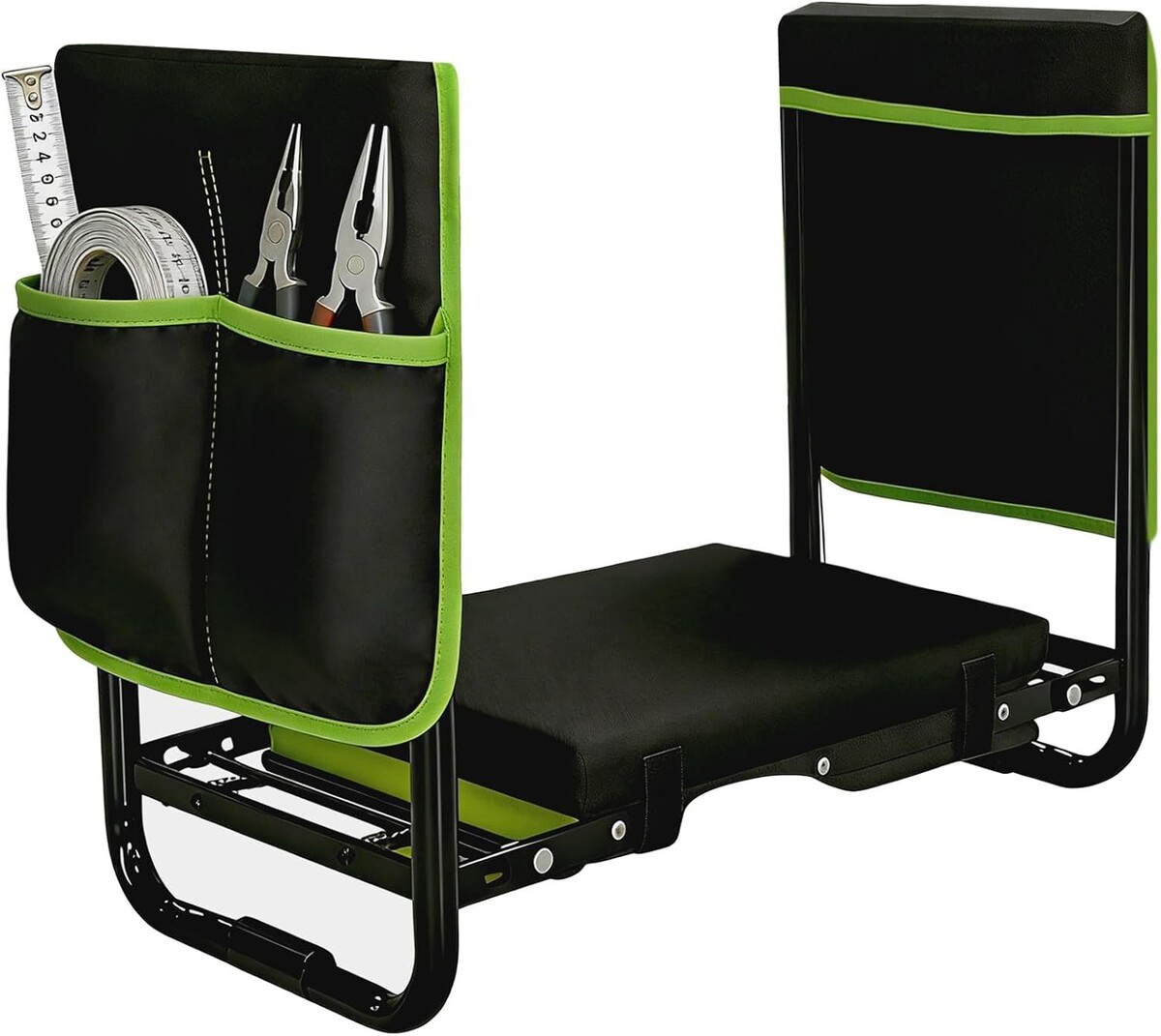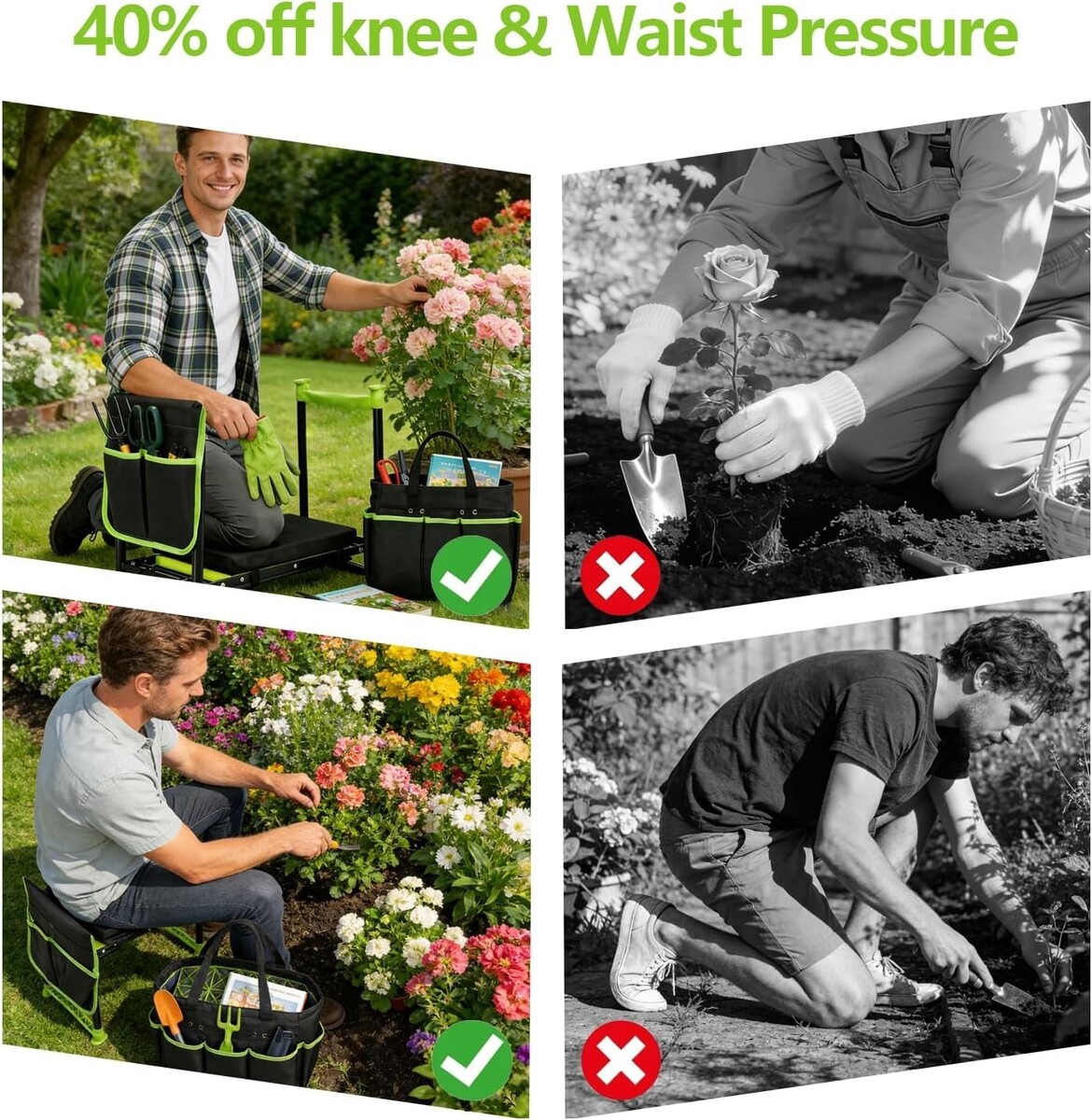 Stay Organized Hands-Free: Equipped with two detachable tool pouches, it conveniently stores essentials like pruners, gloves, seed packets, and a water bottle, keeping everything within easy . The pouches also serve as a protective cover for the seat, ensuring the kneeler remains clean and dry.