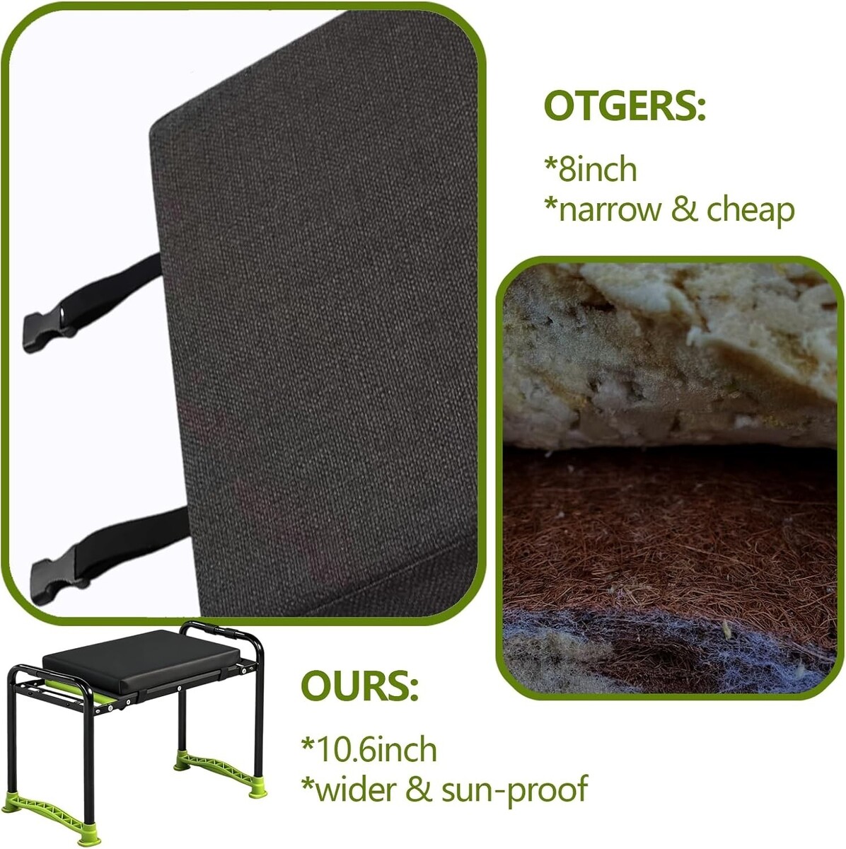 Extra-Wide Thickened Design for Superior Comfort: Enjoy an extra-large 11-inch kneeling pad and a 1.8-inch thick EVA foam cushion that relieves pressure on your knees and back. Perfect for prolonged gardening, camping, or fishing sessions, offering exceptional comfort especially for seniors or individuals with joint discomfort.