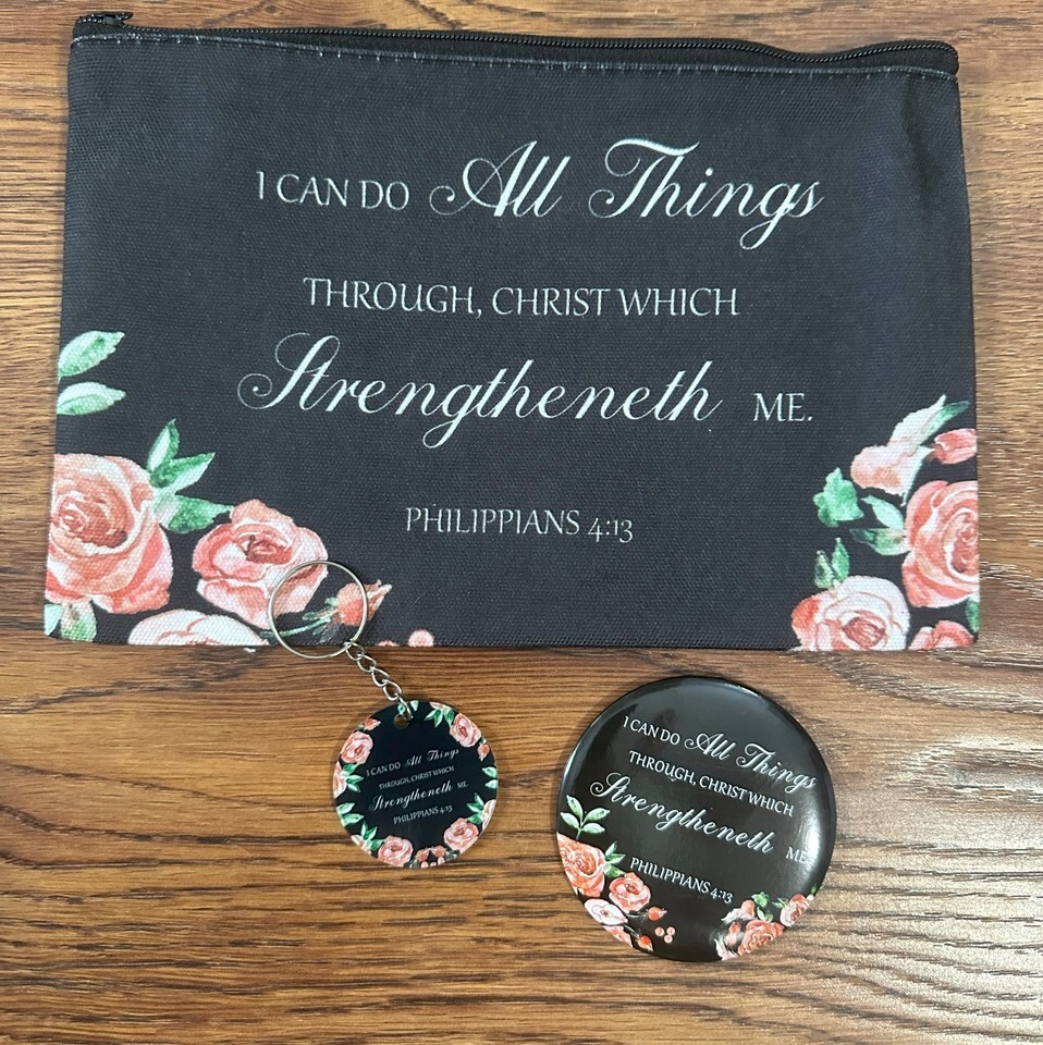 Christian Gifts Includes: Makeup Bag, Bible Verse Mini Mirror and Key Chain