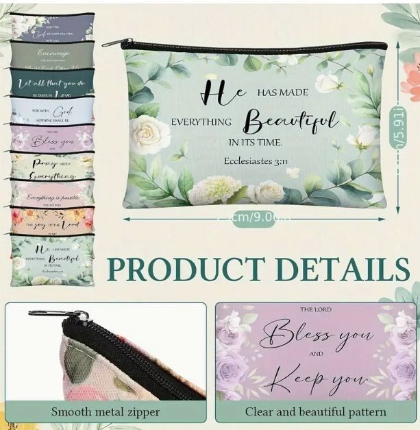Keep your essentials organized and your spirit uplifted with this beautifully designed Bible Verse Canvas Makeup Bag Set! Each item in the set is thoughtfully crafted to reflect faith and encouragement, making it a perfect gift for women who cherish spiritual inspiration.