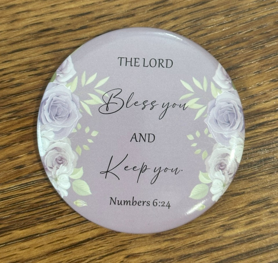 The compact mirror features double-sided printing with a unique Bible verse or faith-based message, ideal for quick touch-ups and daily inspiration on the go.