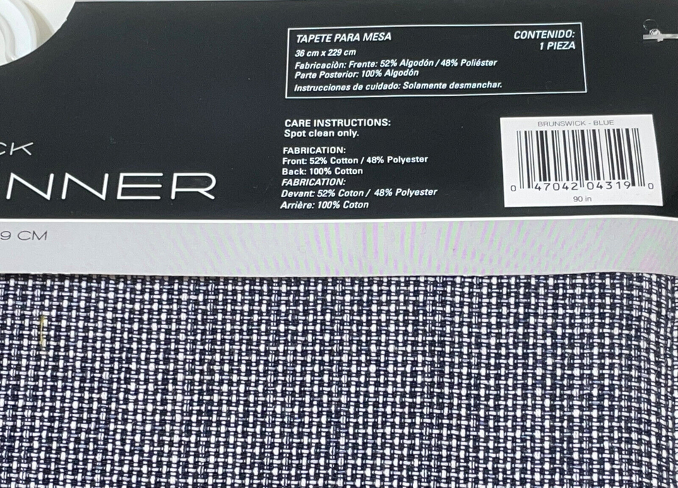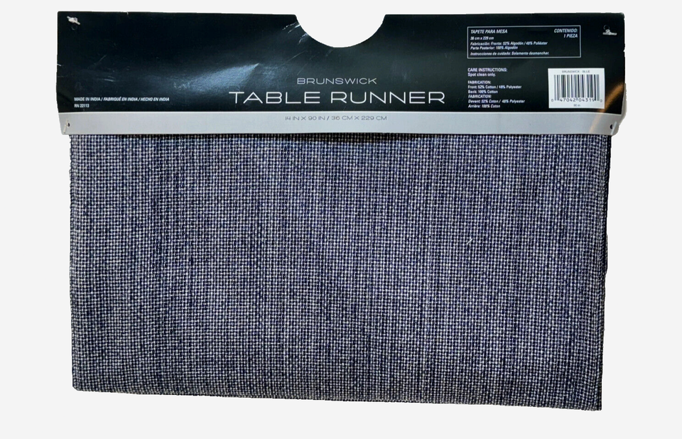 Brunswick Classic Tweed Table Runner 14" x 90" Navy Blue Textured Cotton Blend
