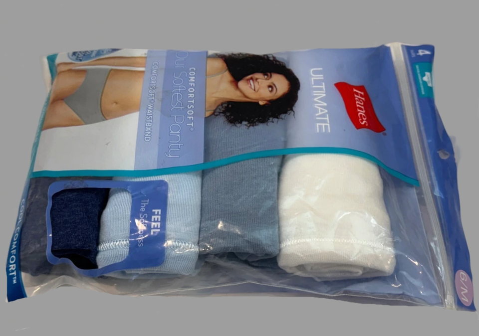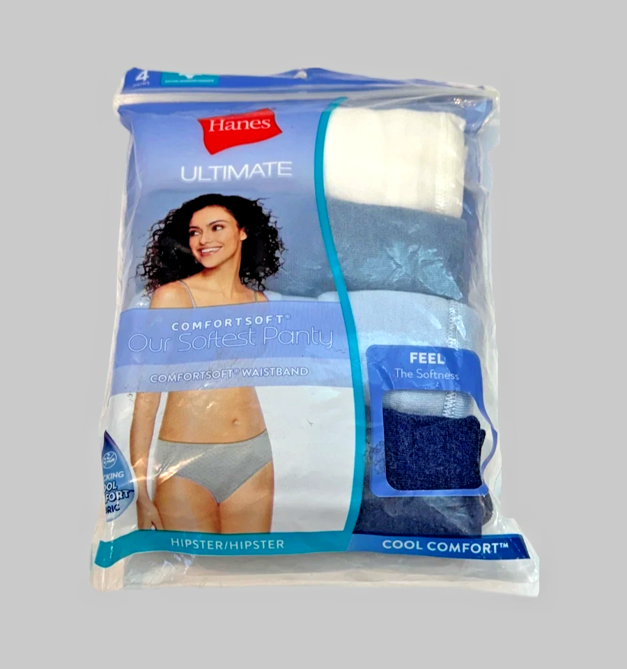 Hanes Ultimate Comfort Soft Hipsters 4 Pair Pack Women 6 Medium Blue White