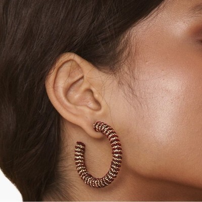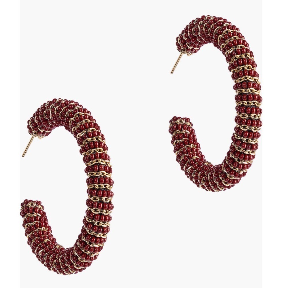 Deepa Gurnani Zareen Hoop Earrings, Maroon/Gold, NWT