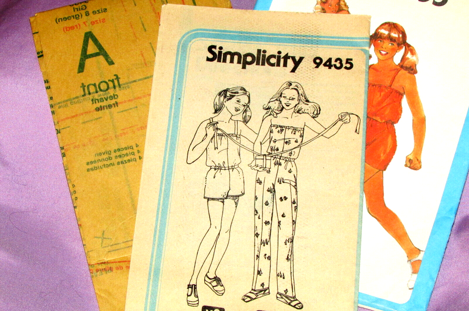 SIMPLICITY 9435 "Jiffy" girl's size 7 and 8 jumpsuit in 2 lengths (sew drwr)