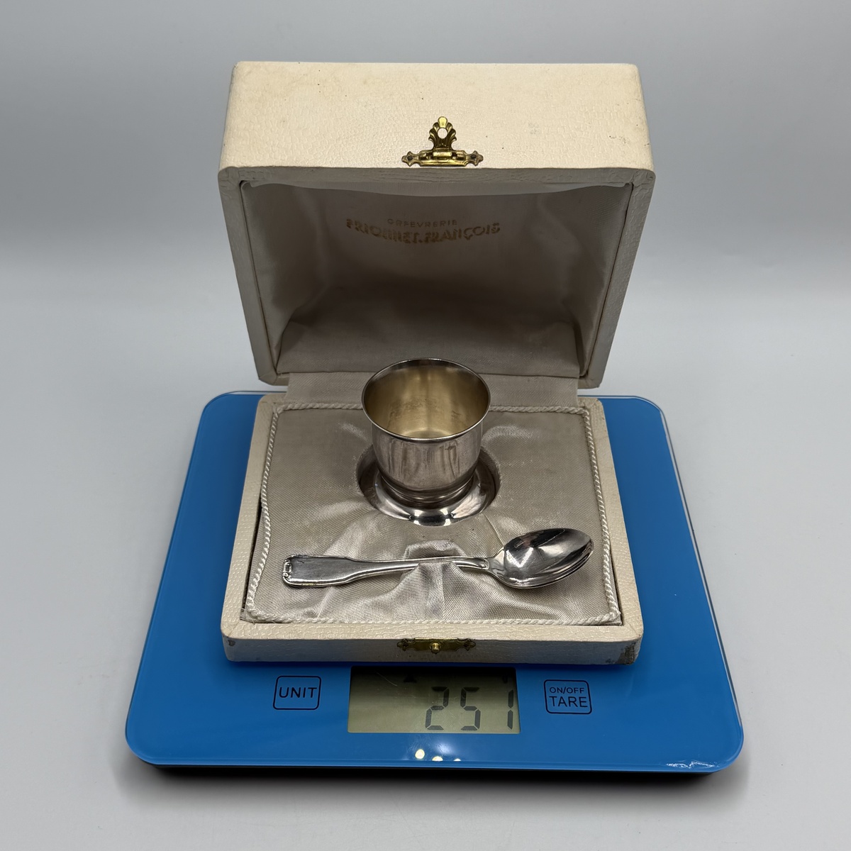 Vintage French Christening Set Frionnet François Silver Egg Cup Baby Spoon 1960s