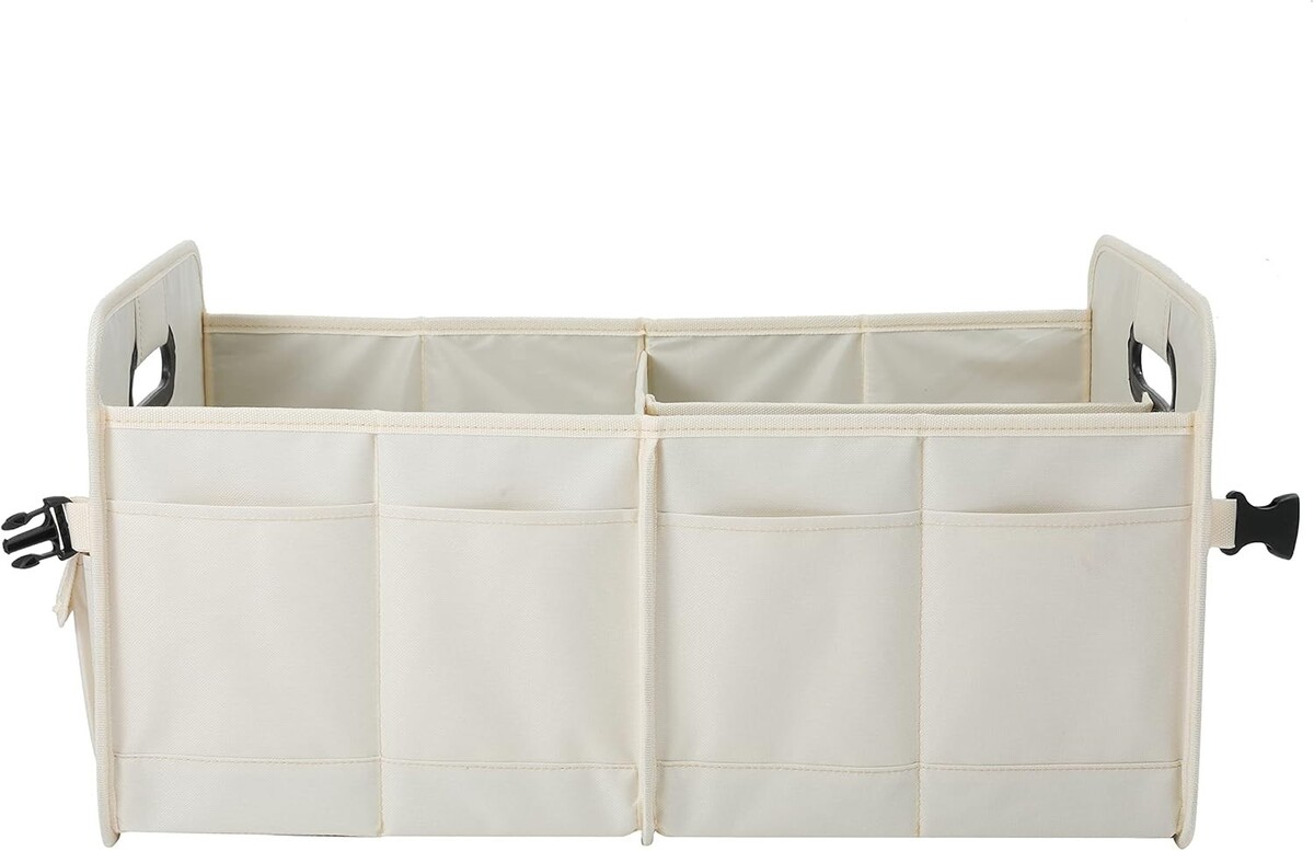 Multi-Compartment Car Storage Organizer - Foldable Beige Solution for Trucks