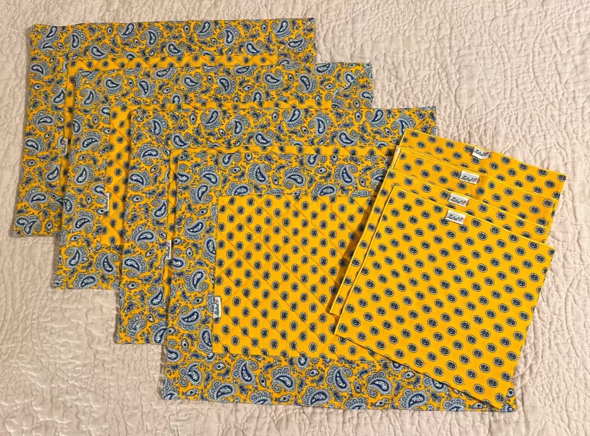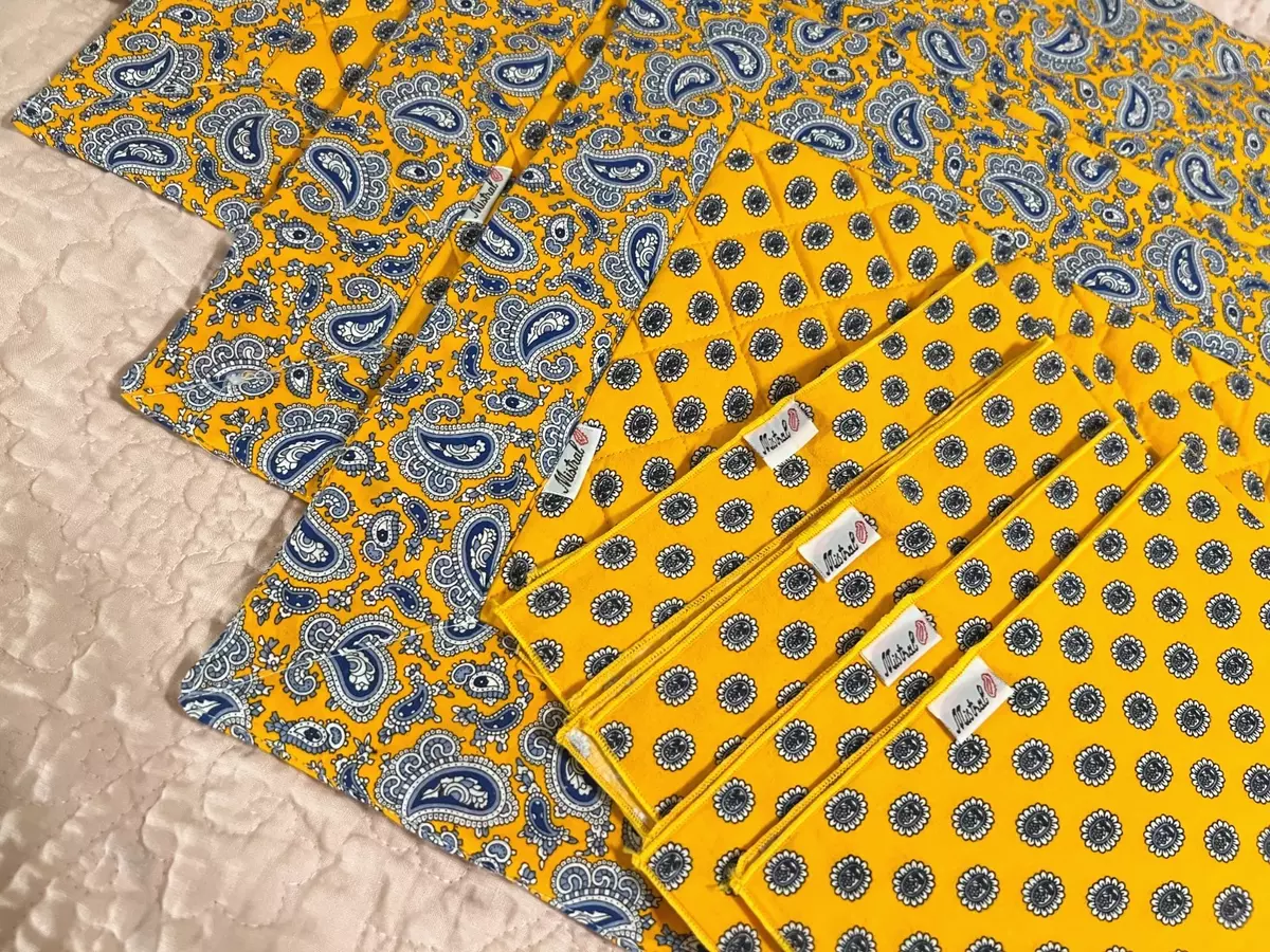 Size/Measures: Placemat 13.5" x 18" Rectangle, Napkin 17.5" Square.
