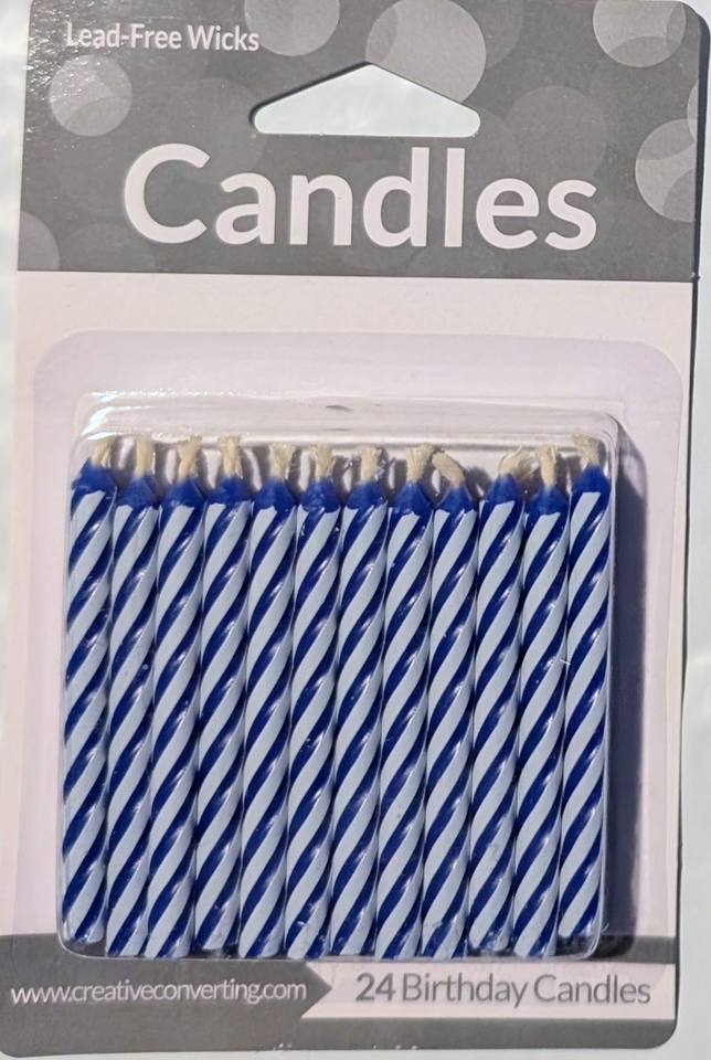 Blue and White Striped Birthday Candles (24) - Party Supplies