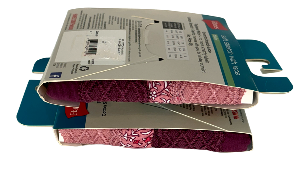 Hanes Soft Stretch Bikinis Lace Women 6 M (2) 2 Packs Pink Purple Cotton Blend