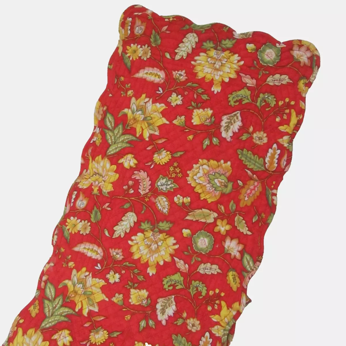 C F Carleton Floral Red Quilted Reversible Scalloped Table Runner