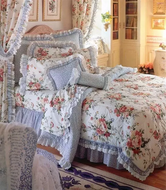 Country floral combines with ruffles to give a fresh look reminiscent of spring.