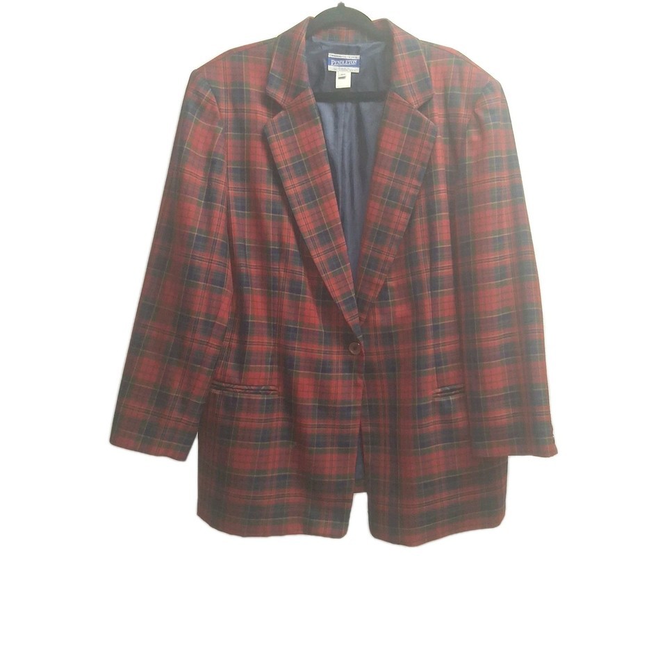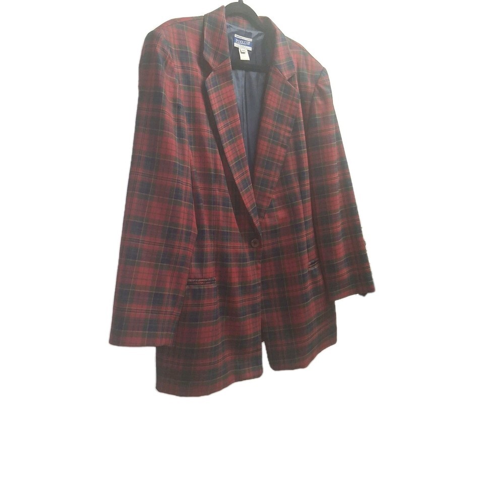 Vintage Pendleton Red Plaid Jacket 100% Virgin Wool Size 18W