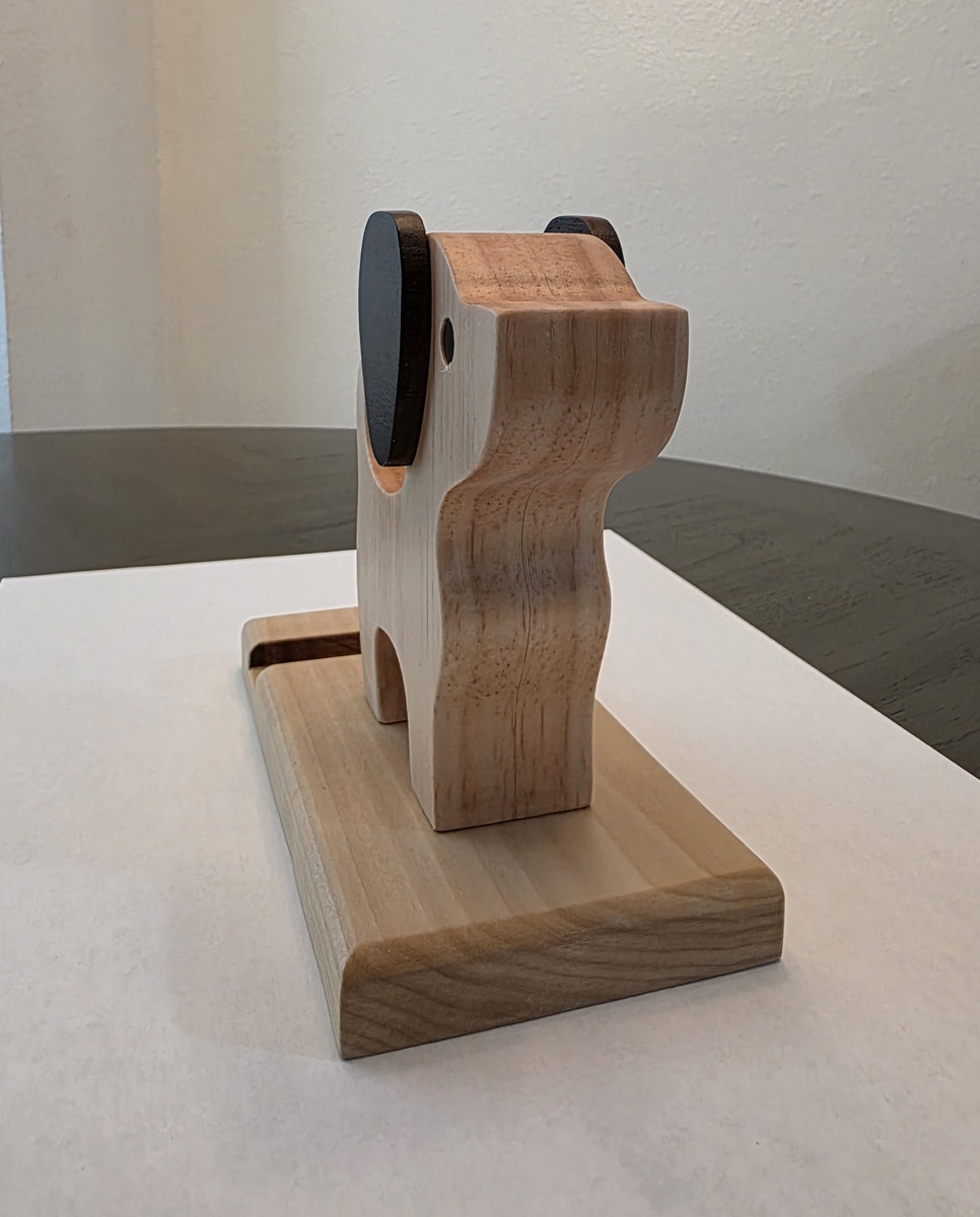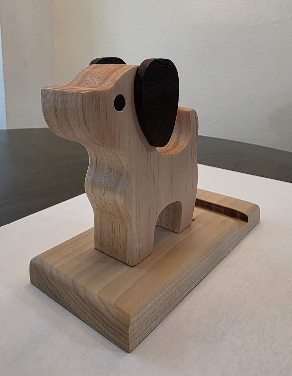 This handcrafted with superior attention to detail, this wooden cell phone holder is a unique and stylish accessory for your phone. Made from clear pine and poplar woods with a matte clear finish featuring a puppy dog design. Compatible will all universal phone brands, this holder adds a touch of whimsy to your cell phone while serving as a functional mount to keep your device charged and secure. Perfect for those who appreciate handmade craftsmanship and a touch of personality in their cell phone accessories. Dimensions: 7-1/4"wide x 6"tall x 3-1/2"deep.
