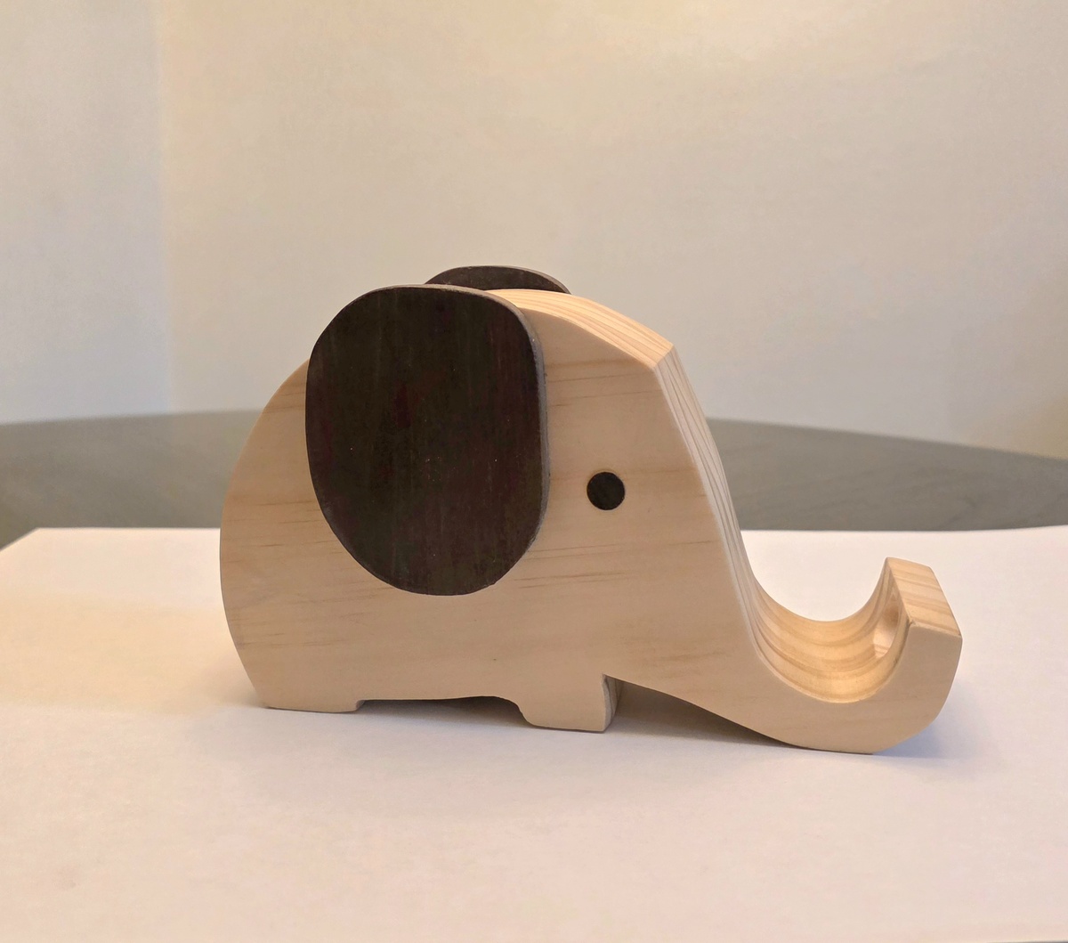 Handcrafted with superior attention to detail, this wooden cell phone holder is a unique and stylish accessory for your phone. Made from pine wood with a walnut accent stain and a matte clear finish featuring a charming elephant design. Compatible will all universal phone brands, this holder adds a touch of whimsy to your cell phone while serving as a functional mount to keep your device charged and secure. Perfect for those who appreciate handmade craftsmanship and a touch of personality in their cell phone accessories. Dimensions: 7-1/2"wide x 4-1/2"tall x 2-3/4"deep.