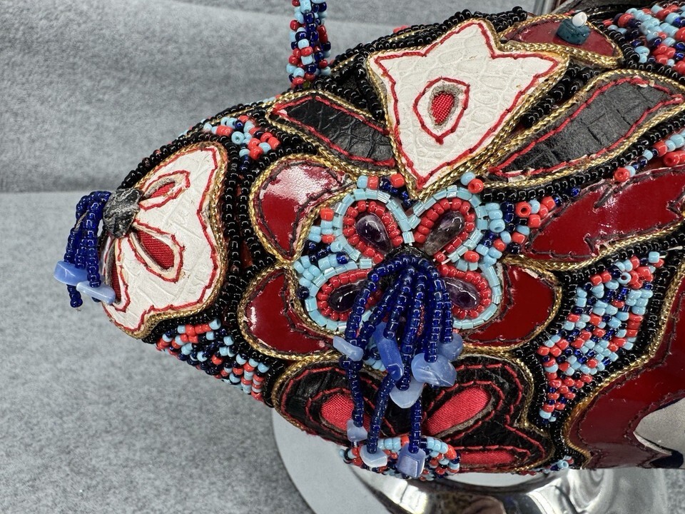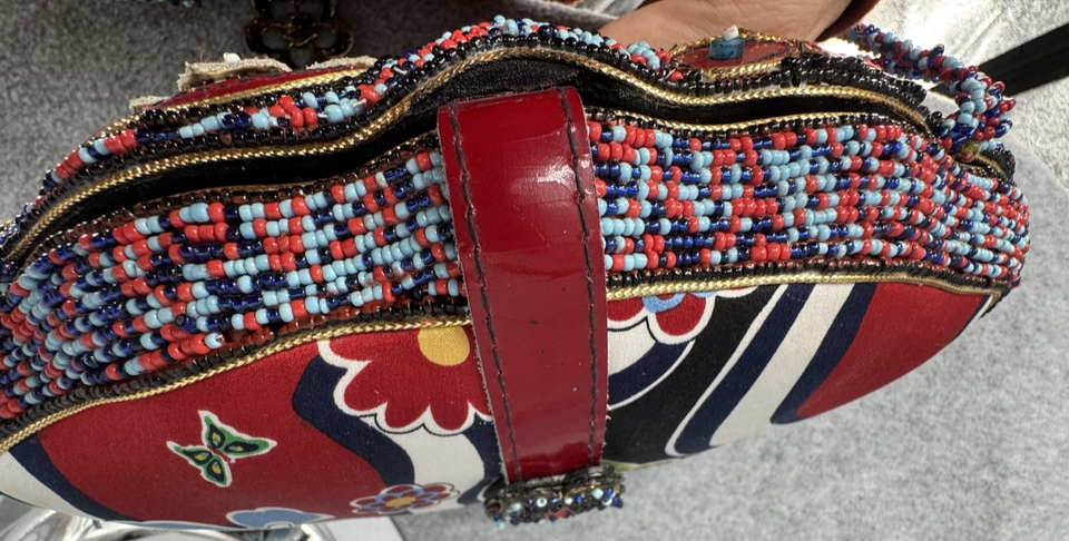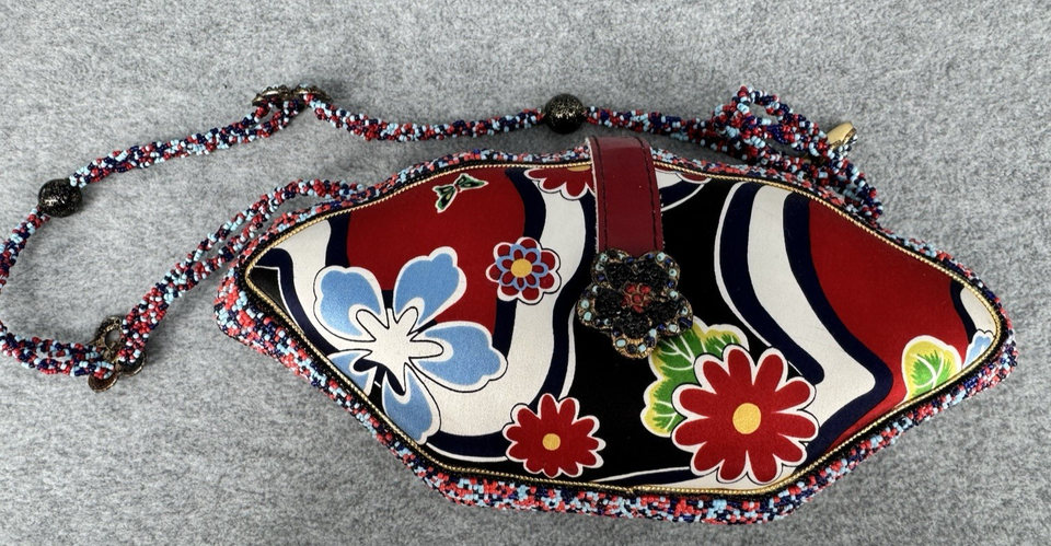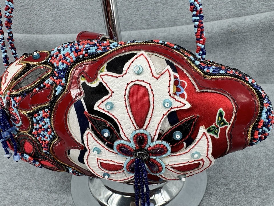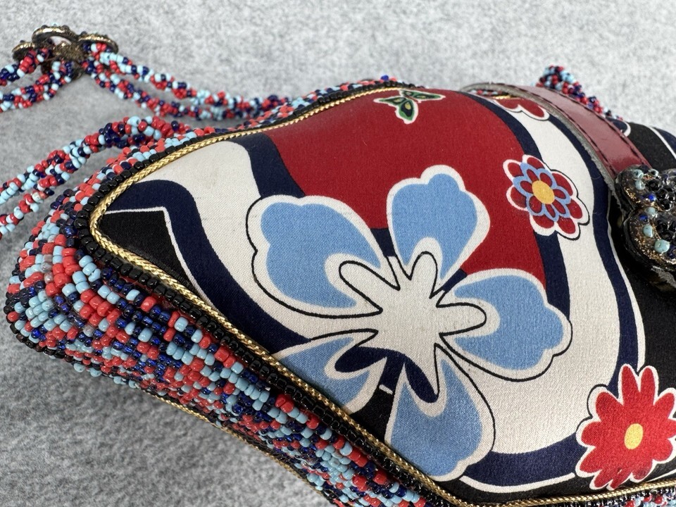 Mary Frances Beaded Crossbody Shoulder Bag Red Blue Floral Butterfly Embellished