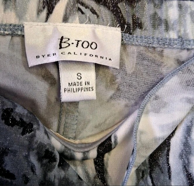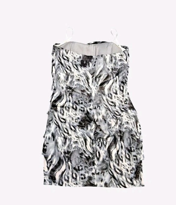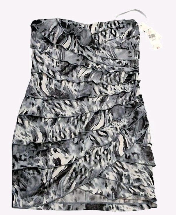 Vintage Byer Too California Strapless Ruffle Dress Grey Animal Print Size Small