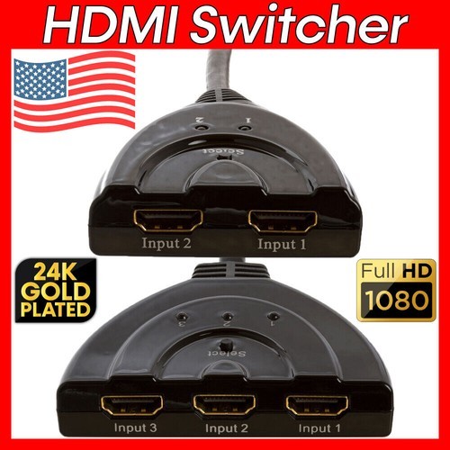 Fosmon 3 Port HDMI 2.0 Pigtail Switch 1.8' Braided Cable 2.0 Auto Switch New