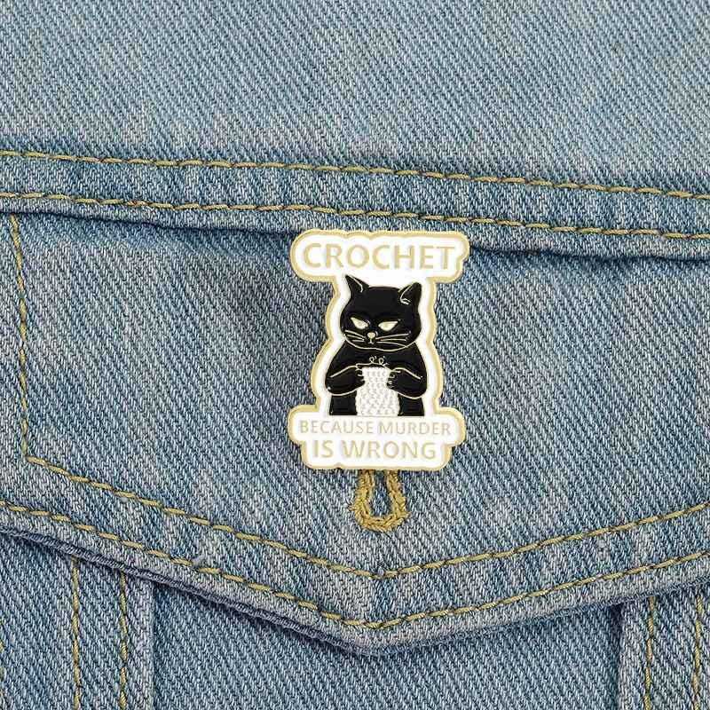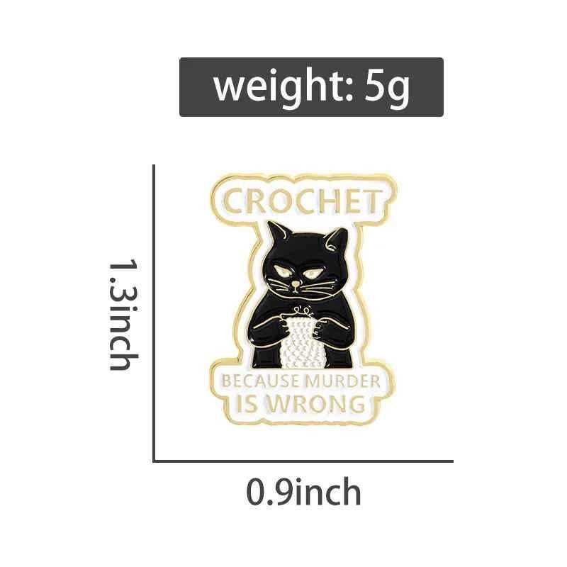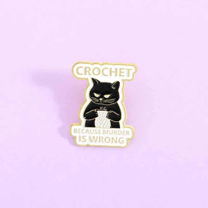 Crochet Black Cat Enamel Pin, Funny Quote Brooch, Tote Bag Accessory