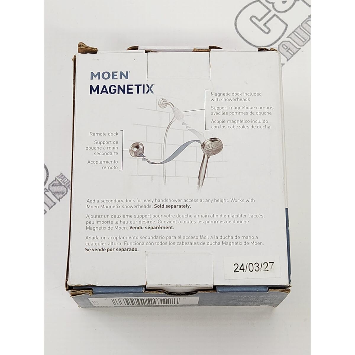 The Moen Magnetix Remote Dock provides additional docking where you need it most. Quickly mounted with either the included permanent waterproof adhesive or screws and wall bracket, the dock works with any Magnetix showerhead as an alternate location to secure your handshower, providing easy access at any height. Its ideal for bathing children and pets or seated bathing.