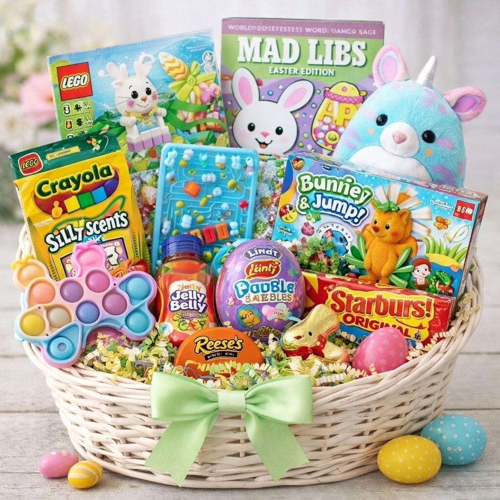 Celebrate Easter with a fun and festive custom Easter basket filled with toys, treats, and seasonal surprises! Each basket is thoughtfully assembled with colorful Easter goodies and decorations, making every basket unique and exciting.