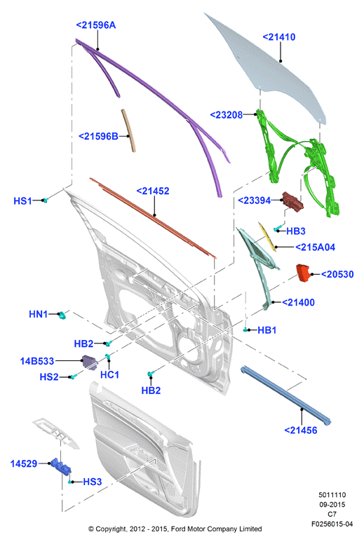 13-16 USED GENUINE OEM FORD FUSION LH WINDOW REGULATOR W/ MOTOR, P/N R9CRB