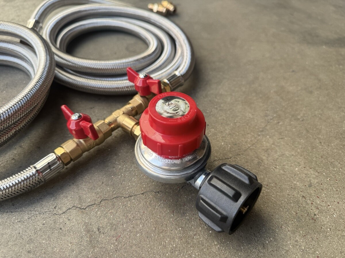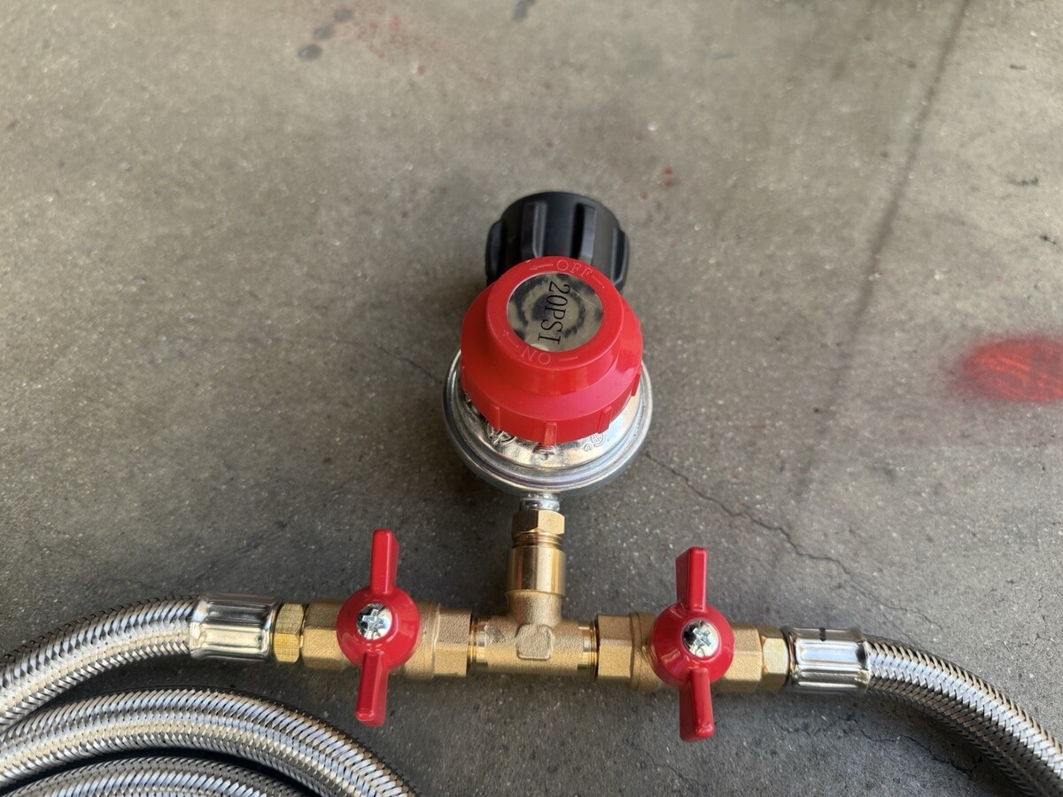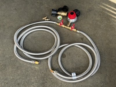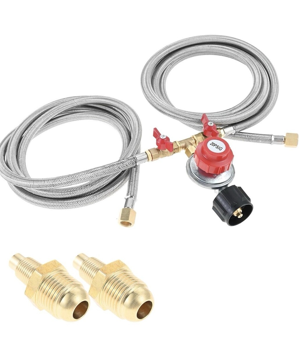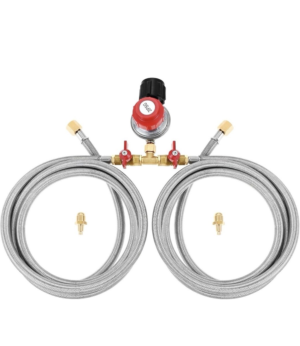 0-20 Psi Adjustable LP Propane Regulator with Y Splitter Hose 8ft