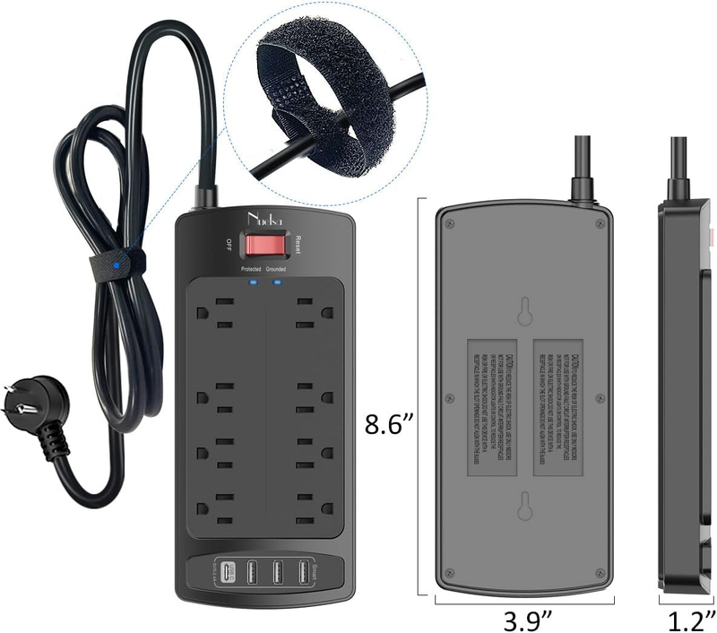 2700 Joules Surge Pretector Power Strip with 8 AC Outlets and 4 USB Charging Ports
