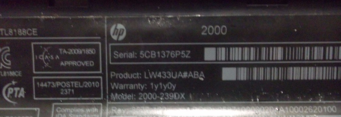it is a HP Pavilion 2000-239DX has 15.6" Screen and 1.60GHz AMD Dual-Core E-350 Processor with 3GB Ram 320GB HDD (Formatted)