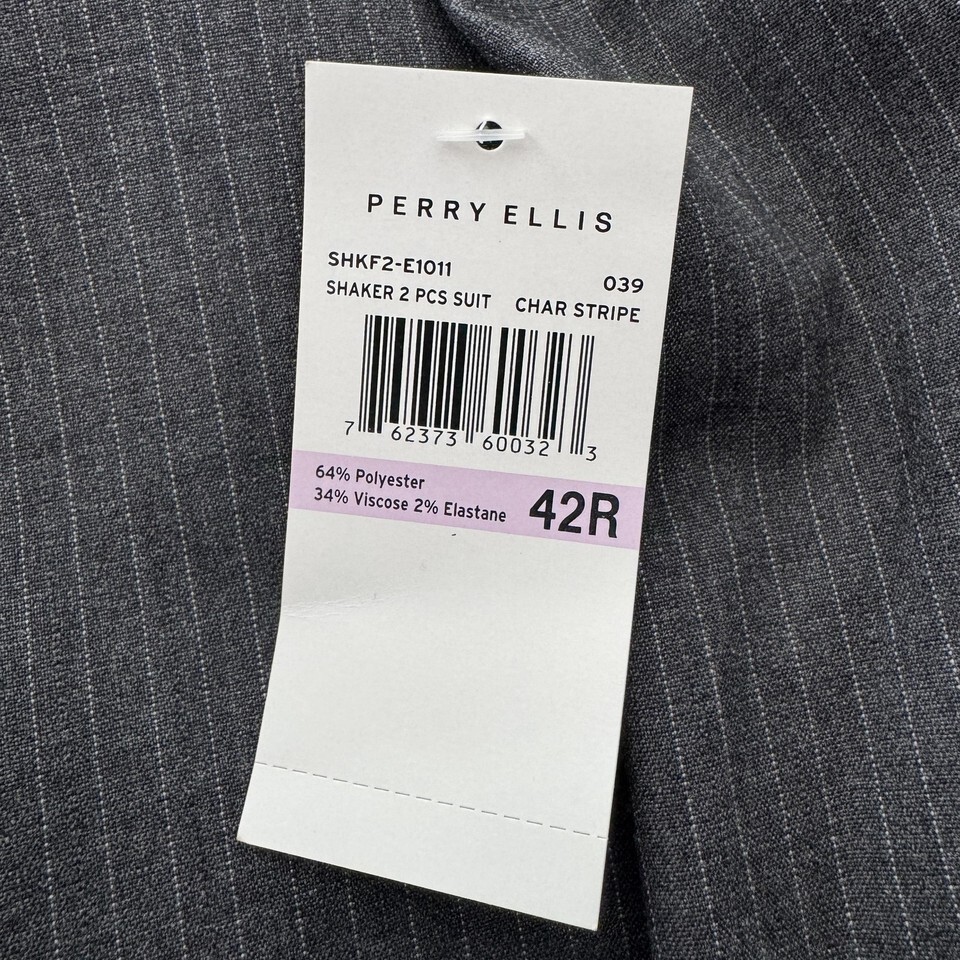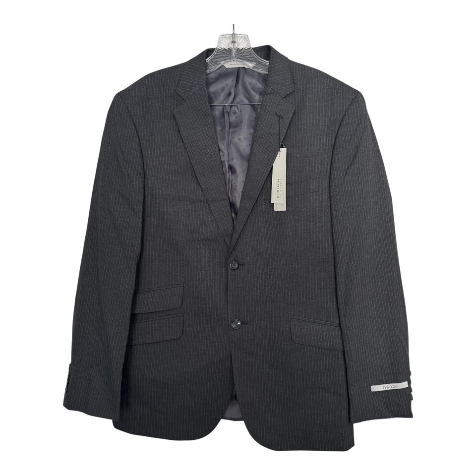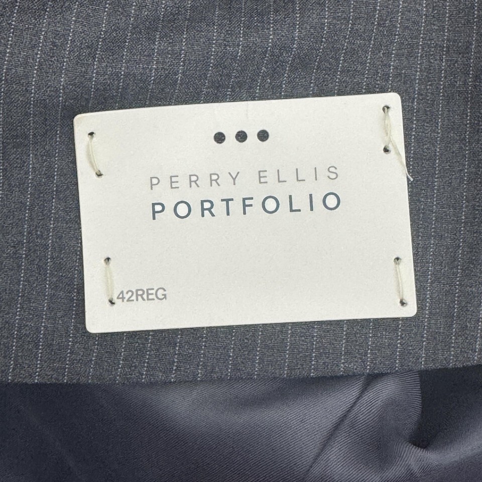 Perry Ellis Portfolio Blazer Mens 42R Gray Stripe Slim Fit Stretch 2 Button NWT