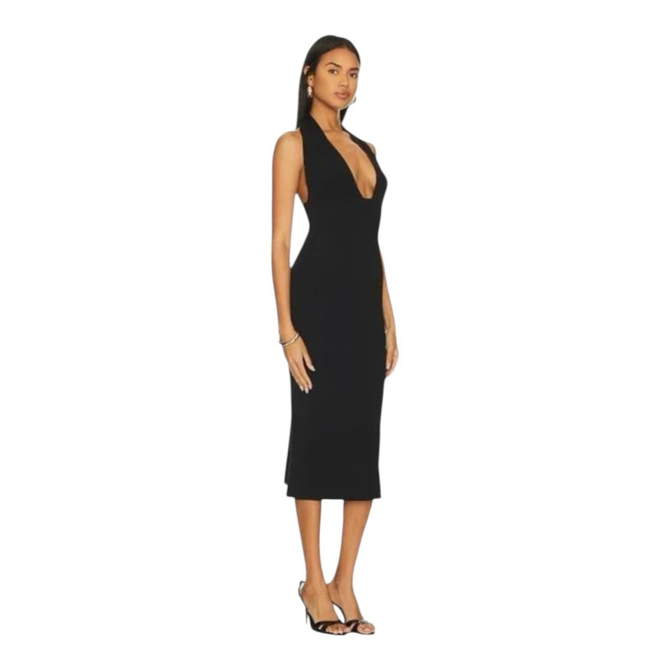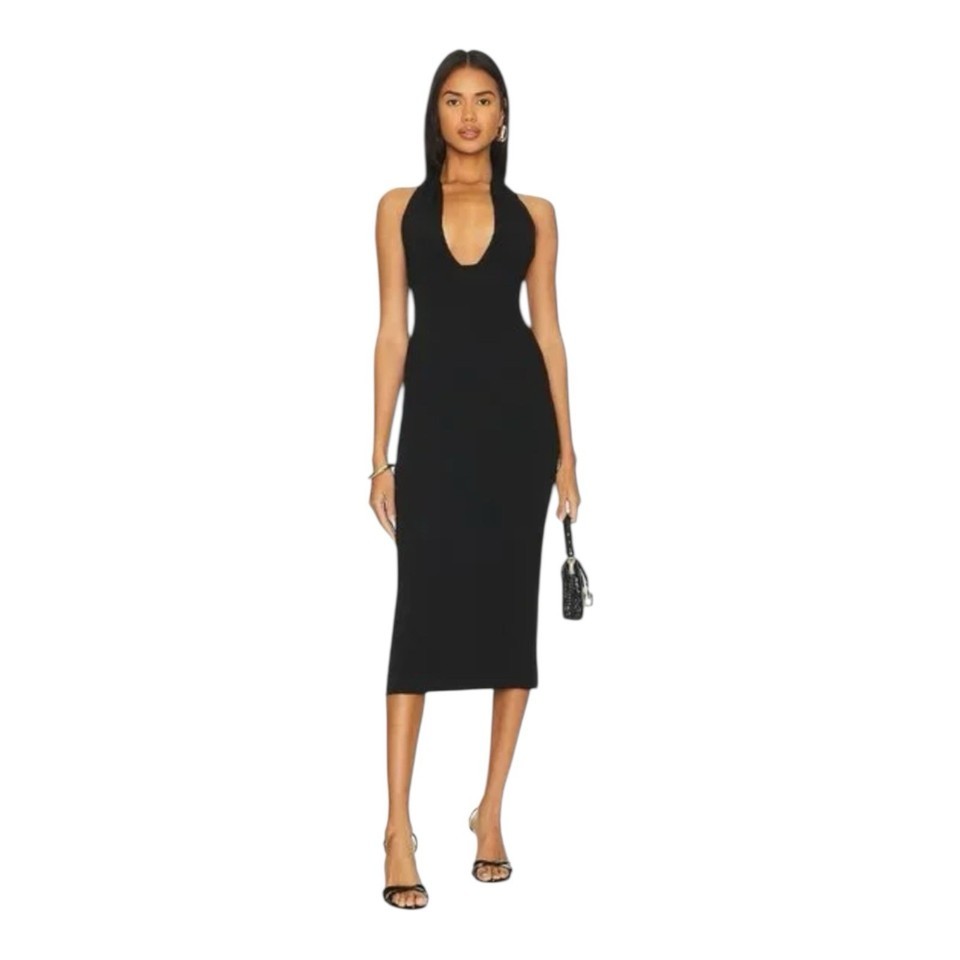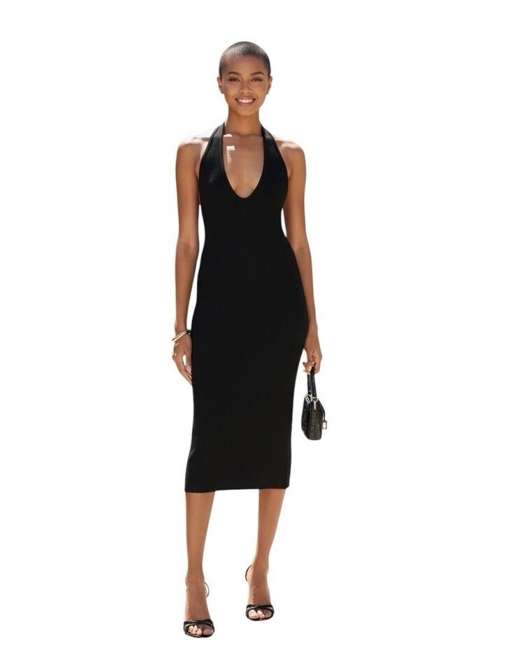We Wore What Women's Halter Midi Fully Fashioned Rib Black Size Medium WWD43-01