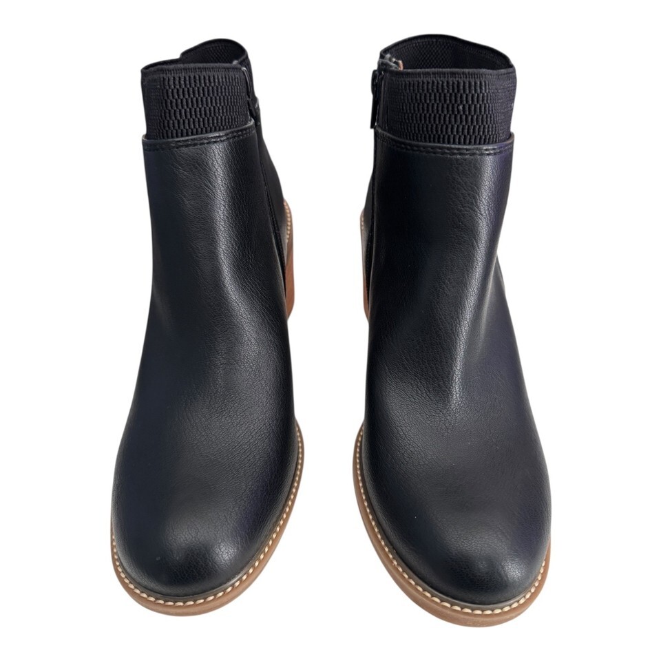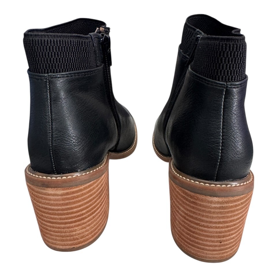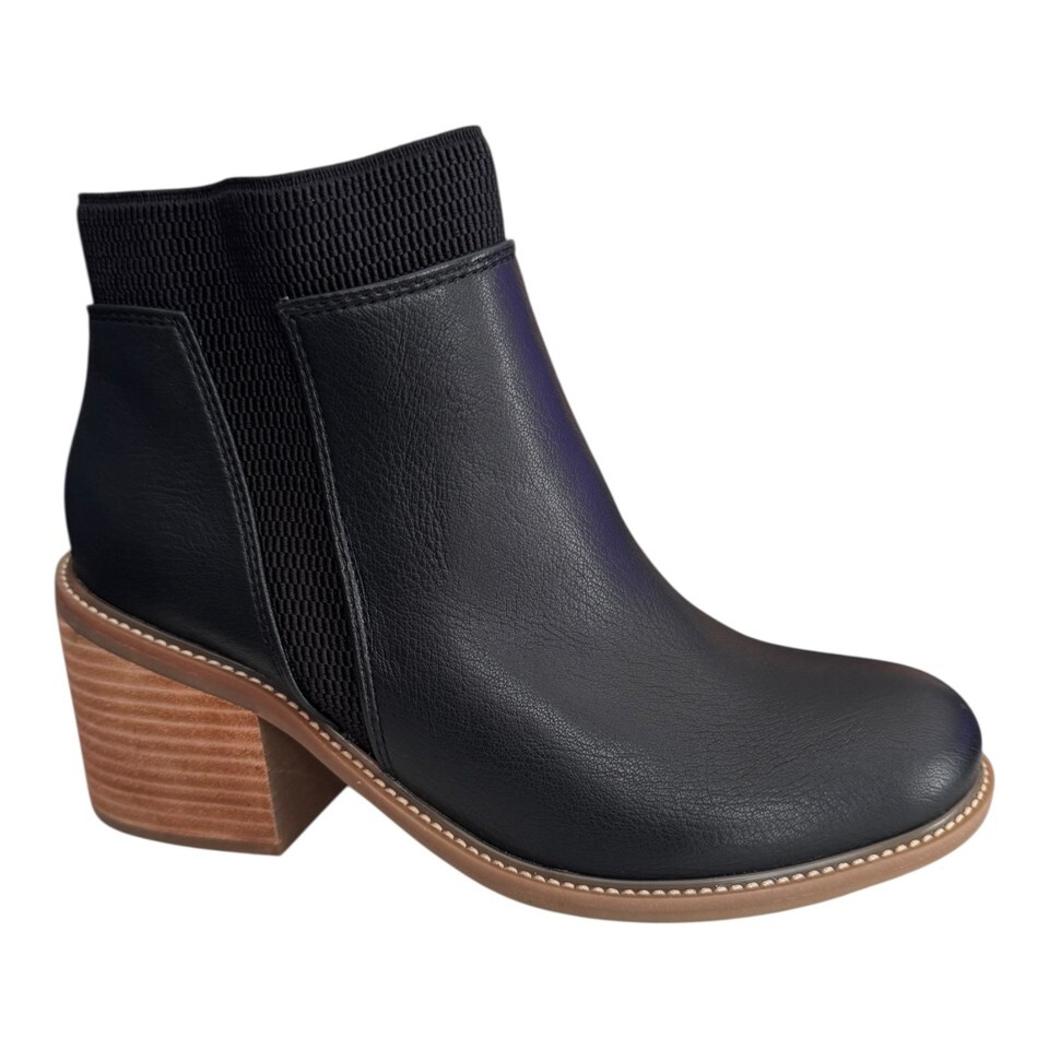 Korks Clove Women's Size 7.5 Black Ankle Block Heel Bootie Zip Stretch Casual