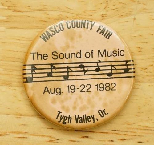 1982 Pinback Button Wasco County Fair Tygh Valley Oregon The Sound of Music - brown foxing noted. - - measures 1.75". No smoke or pet odor.