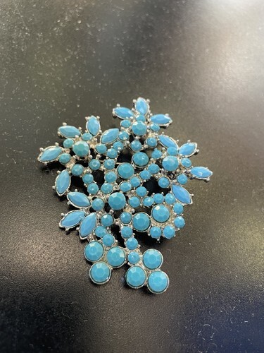 Turquoise silver tone flower pin brooches 2 5/8”x2” Great Gift