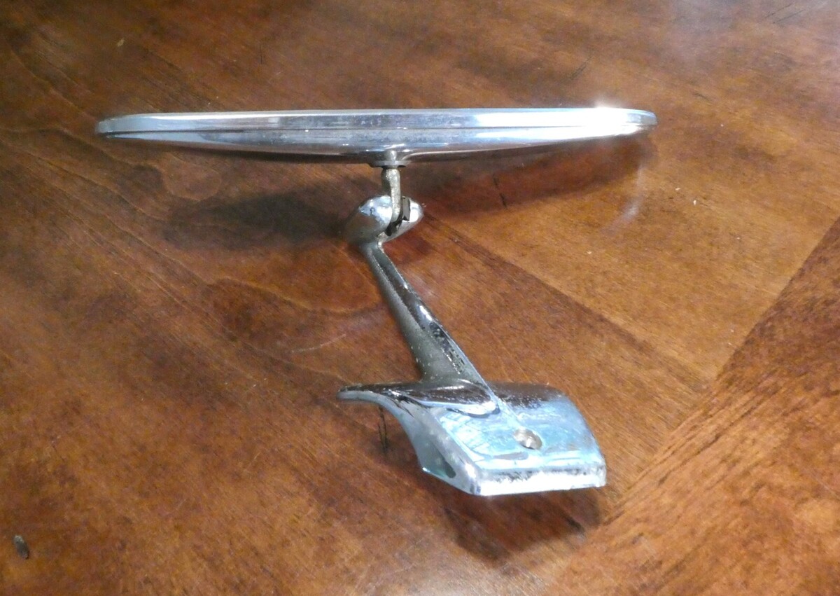 1955 1956 CHRYSLER IMPERIAL, NEW YOKER, NEWPORT, WINDSOR REAR VIEW MIRROR. Mirror pivots and swivels without binding or being too loose. Chrome finish has some pitting as shown in pictures. Glass mirror has some specks and fogging. Items I sell May have minor scratches / scuffs / dings / dents / cracks / rust or paint loss !!!!