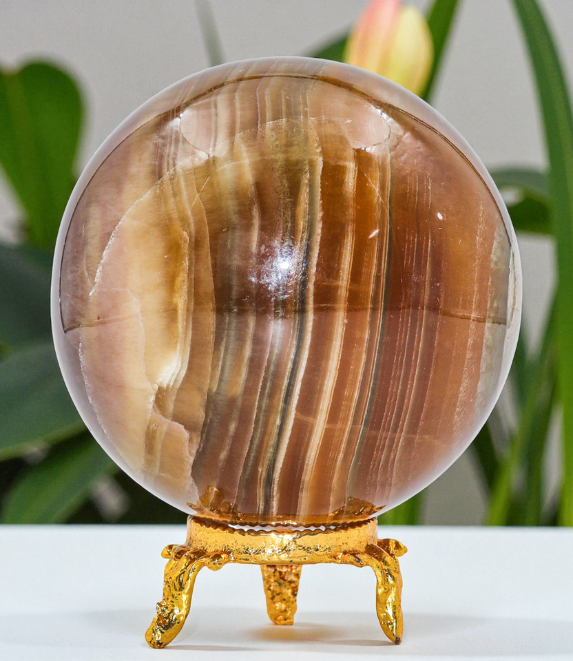 A+ Amarillo FLUORITA Cristal Esfera Curación Piedra Metafísica Decoración...