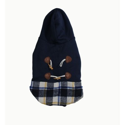 Dog Jacket Navy Blue and Plaid Pieced Style w/ Sherpa Lining andToggles Size L
