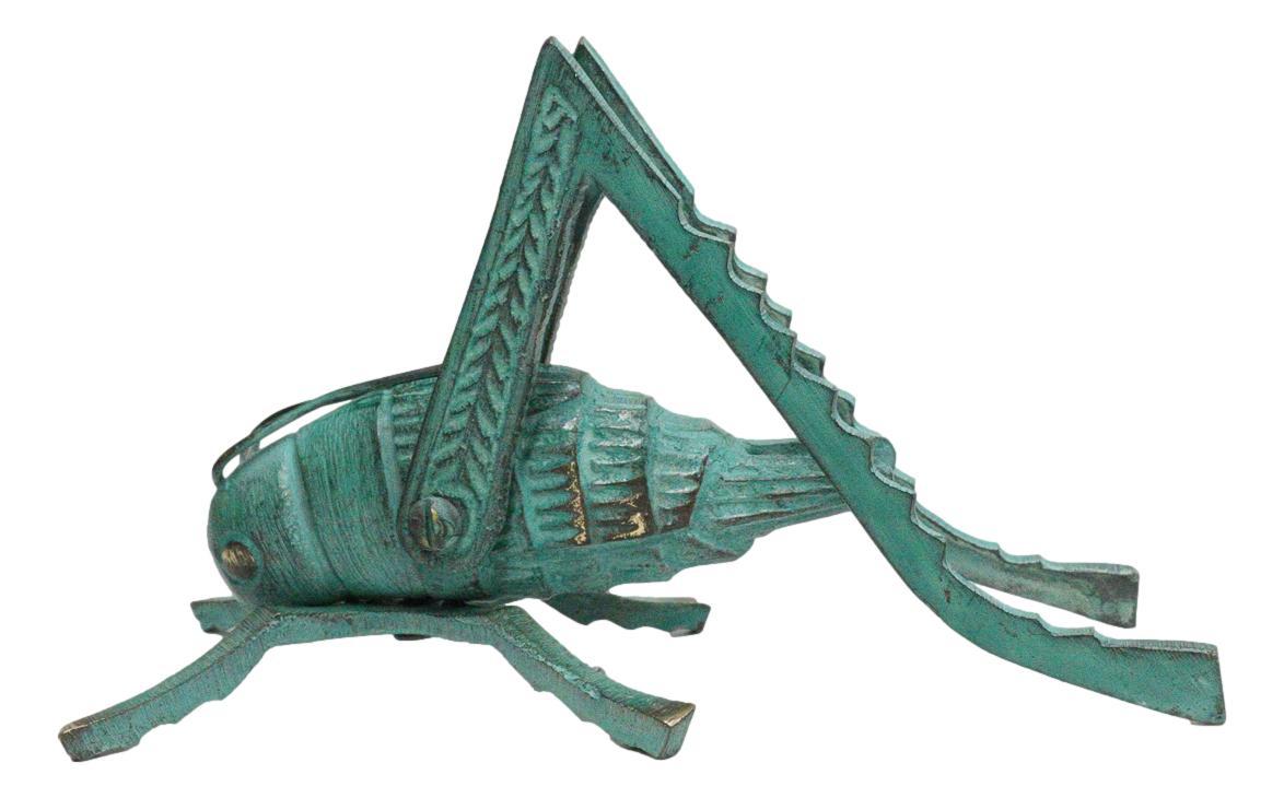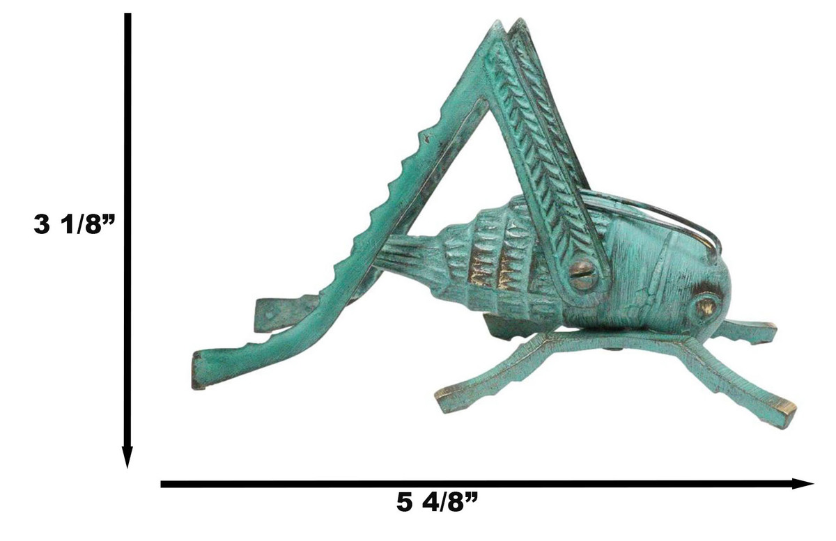 ? Add a touch of charm and symbolism to your decor with this Antiqued Green Verdigris Solid Brass Cricket Good Luck Sculpture. Measuring 5.5 inches long, this finely crafted piece features a detailed cricket finished in a rich green verdigris patina, giving it a classic aged appearance. In many cultures, crickets are believed to bring good luck, prosperity, and protection, making this sculpture both decorative and meaningful.
