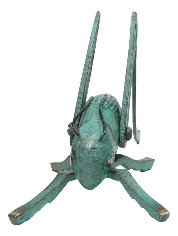 Antiqued Green Verdigris Solid Brass Medium Cricket Good Luck Sculpture 5.5"L