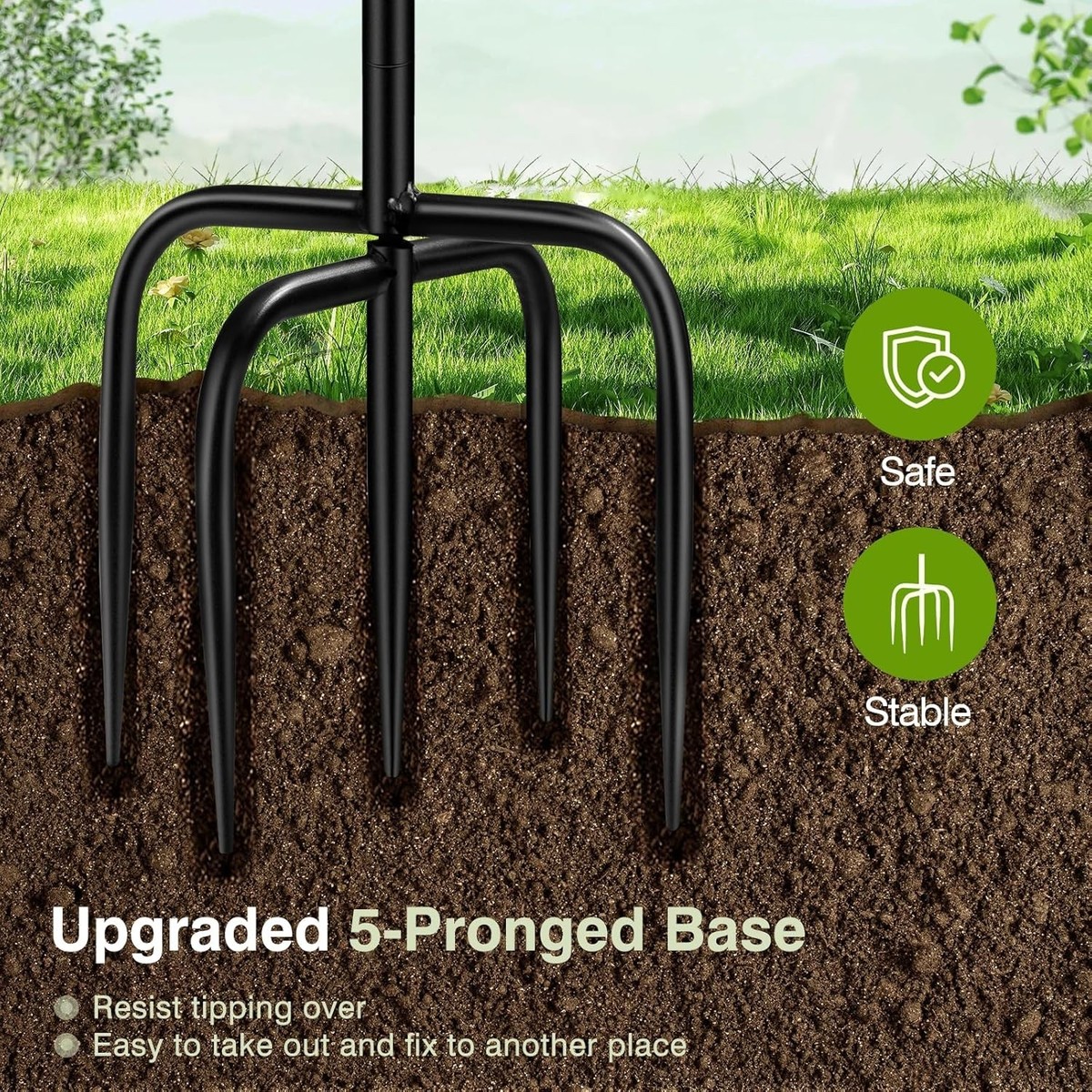 Upgraded 5-Pronged Base: This bird bath features a unique 5-forked base designed to resist tipping and enhance stability. The heavy-duty metal stake, finished with a black powder coat, ensures a sturdy support system that will not bend, break, or fracture.