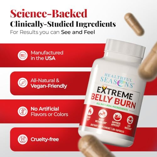 Advanced formula designed for real weight management: Extreme Belly Burn combines Garcinia Cambogia, African Mango, Cissus Quadrangularis, Green Tea (EGCG), and Apple Cider Vinegar into one powerful blend. Each ingredient has been studied for its role in appetite control, metabolism support, and fat reduction. Helps curb cravings and control appetite naturally: Garcinia Cambogia and African Mango extracts are known for supporting appetite regulation, helping reduce overeating and late-night snacking. By promoting satiety, our appetite suppressant supplement makes it easier to stick to your healthy eating plan. Supports metabolism and fat burning efficiency: With Green Tea extract (EGCG) and Apple Cider Vinegar, the capsules encourage thermogenesis, your body?s process of burning calories for heat. This helps support faster metabolism and promotes fat breakdown while preventing new fat storage. Boosts energy, focus, and mood without harsh stimulants: Unlike many weight loss supplements that rely on heavy caffeine, our formula uses carefully chosen plant extracts that may help reduce brain fog, support cognitive function, and lift mood, so you feel balanced and motivated throughout the day Clean, vegan-friendly, and made in the USA: Extreme Belly Burn metabolism booster supplement is manufactured in a GMP-certified facility in the USA, with no artificial fillers, soy, or additives. It?s vegan-friendly, third-party tested, and crafted for those who want results without compromising on quality or safety.