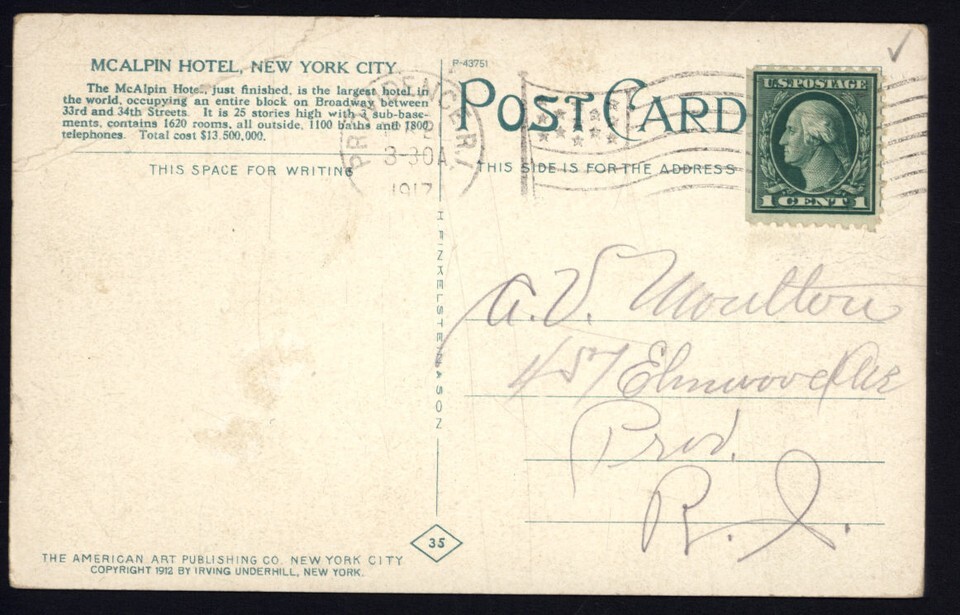 1917 Mcalpin Hotel New York City * Mailed and 50 similar items
