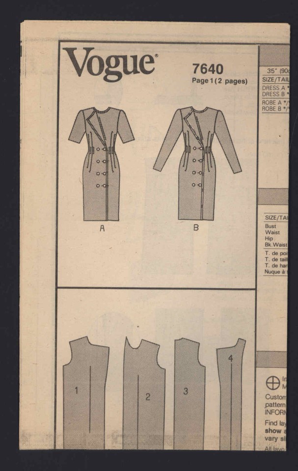 VOGUE CLASSICS 7640 SIZE 12-14-16 * Misses' Dress uncut