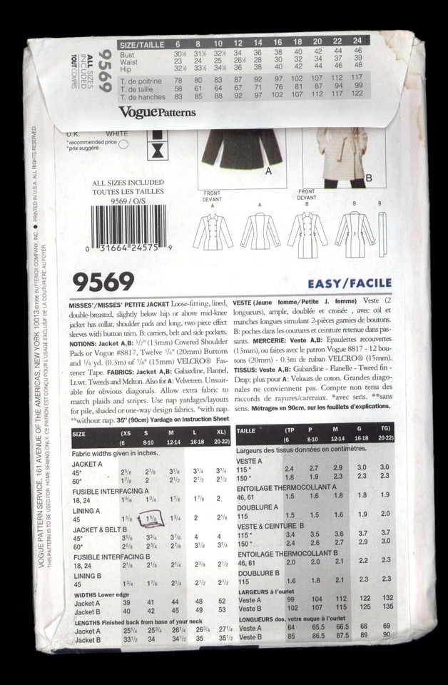 Vogue Elements 9569 - Petite Jacket Size and similar items