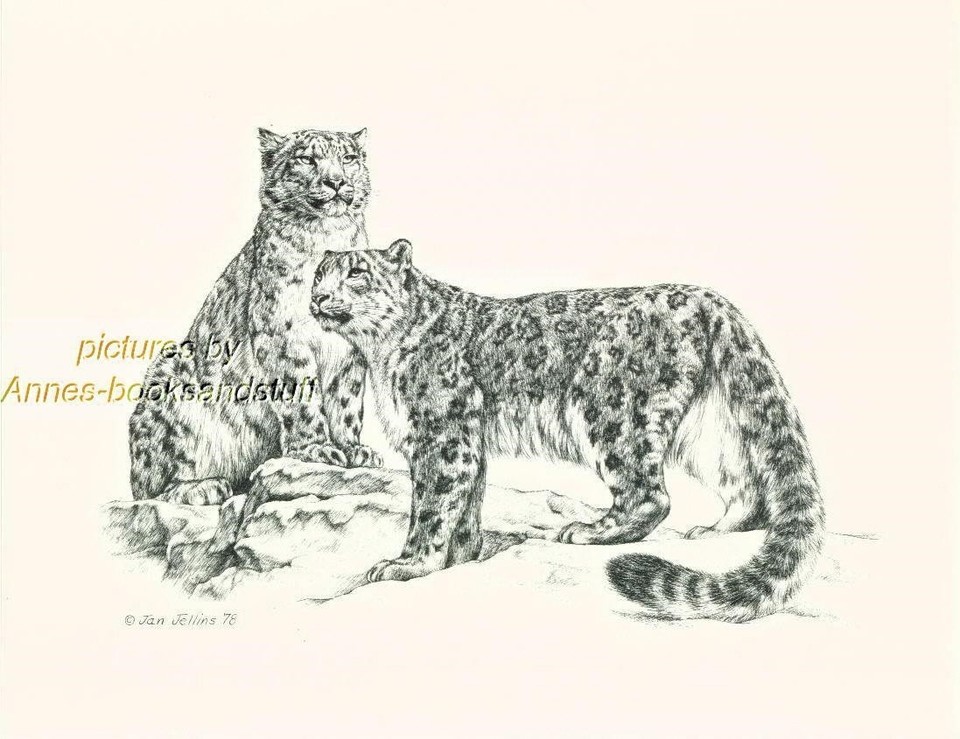 #189 SNOW LEOPARDS * wild life art print * pen and ink drawing by Jan Jellins