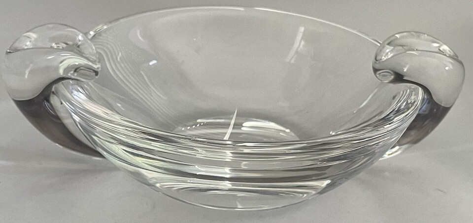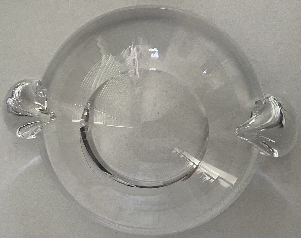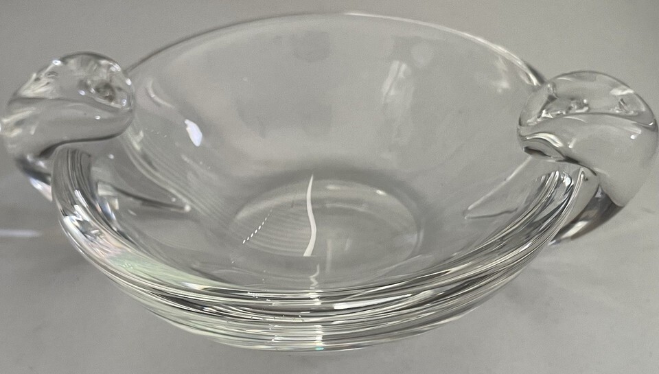 Steuben Ashtray Small Bowl or Ashtray w/ 2 Clear Side Scrolls Mid Century Signed