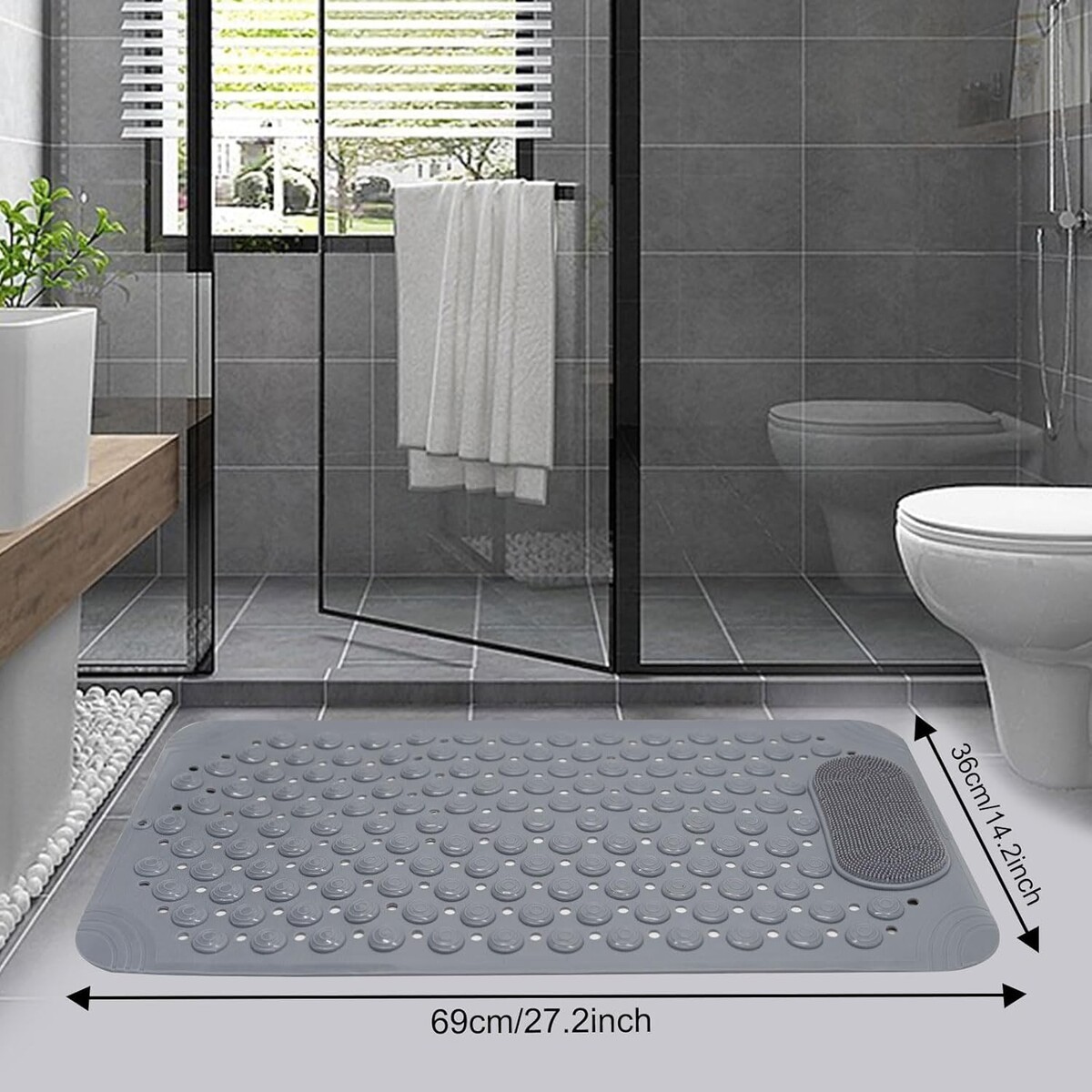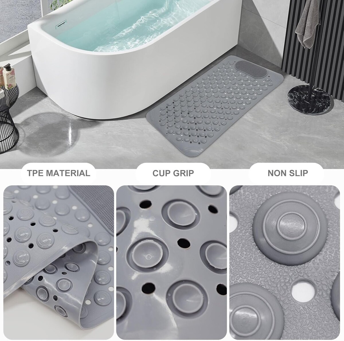 Indulge in a bath experience that prioritizes both your safety and comfort ? order the Elegant Grey Non-Slip Bathtub Mat today!