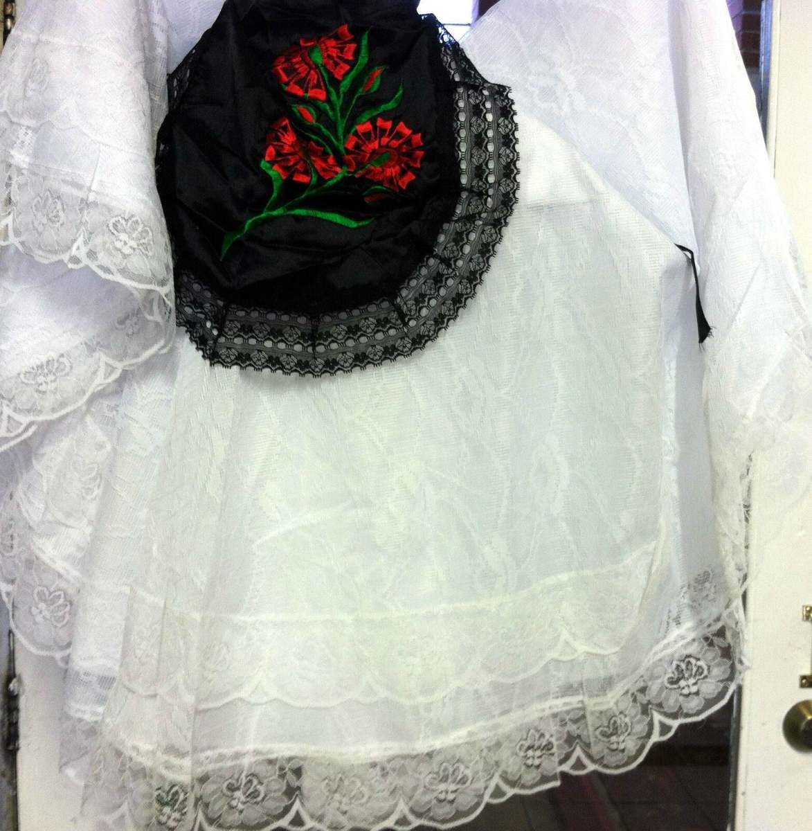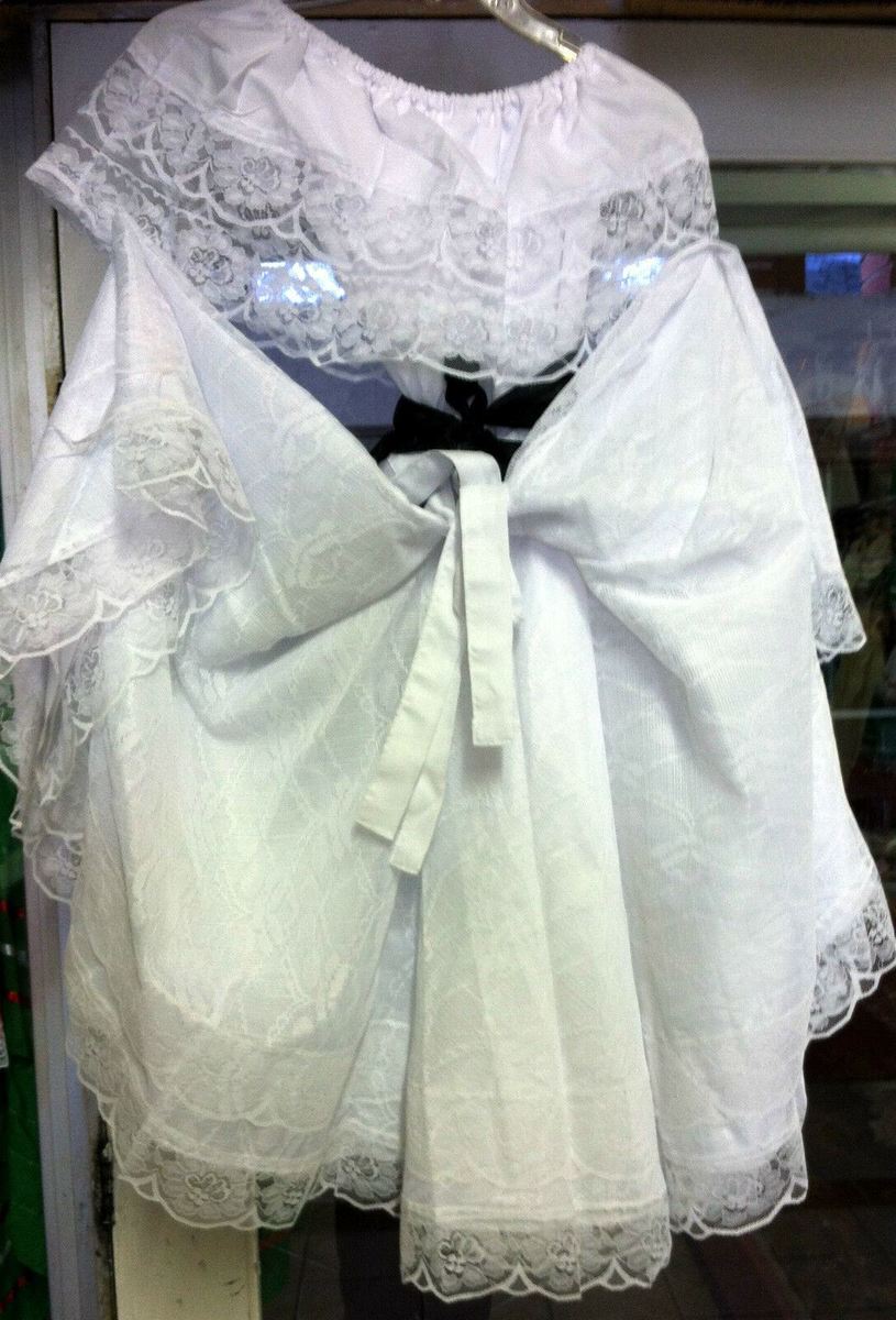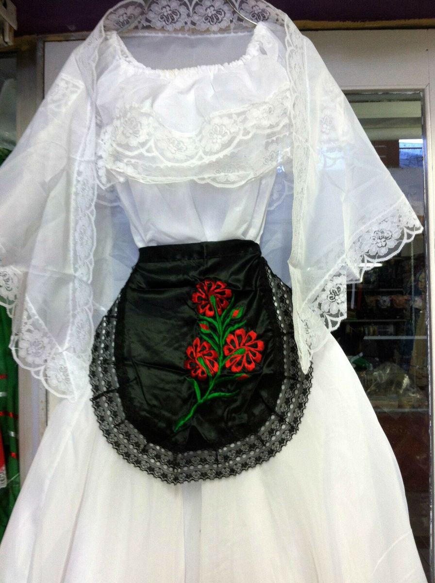 The lace shawl and black apron are included.