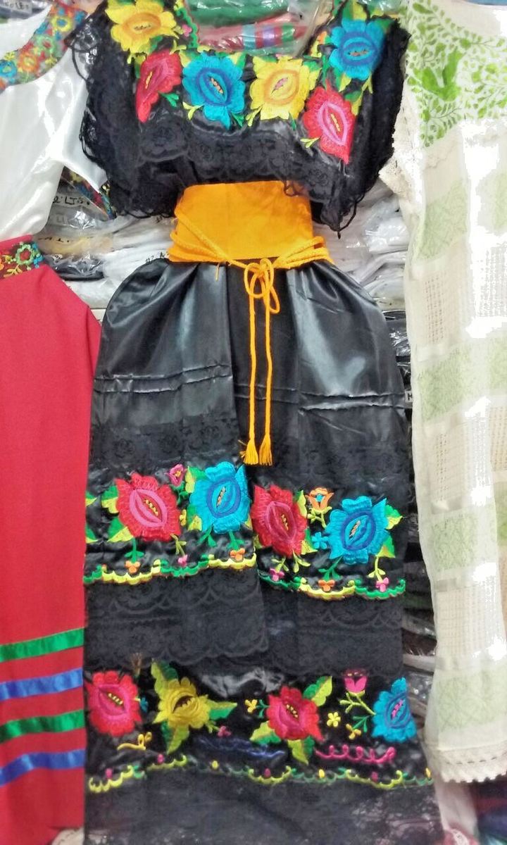Yucatan Girls Folklorico Traditional Dance Fiesta Dress Embroidery Blck Wht New
