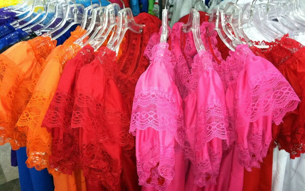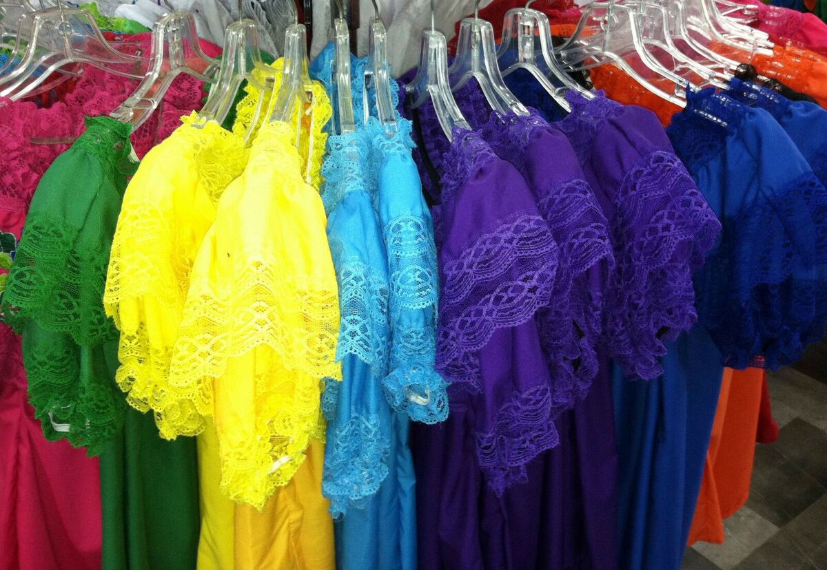 Women's Color Off-Shoulder Ruffle Top Lace Ribbon Mexico Folklorico Fiesta Dance